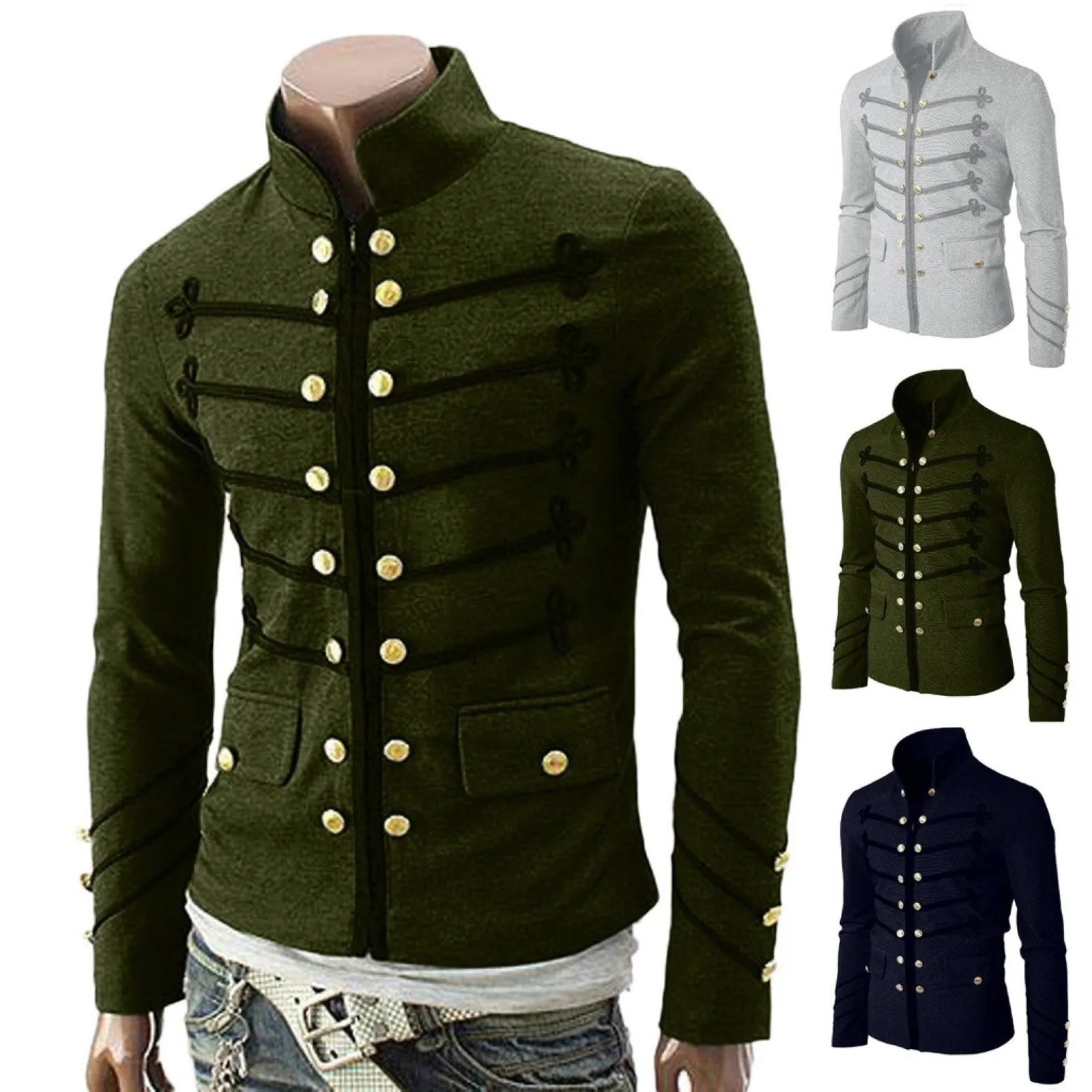 Мужская куртка, Готическая куртка с вышивкой на пуговицах, пальто, ...