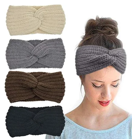 Зимние вязаные головные повязки крупные головные повязки для женщин и девочек Вязаный тюрбан обогреватель для ушей ободок для волос аксессуары для волос