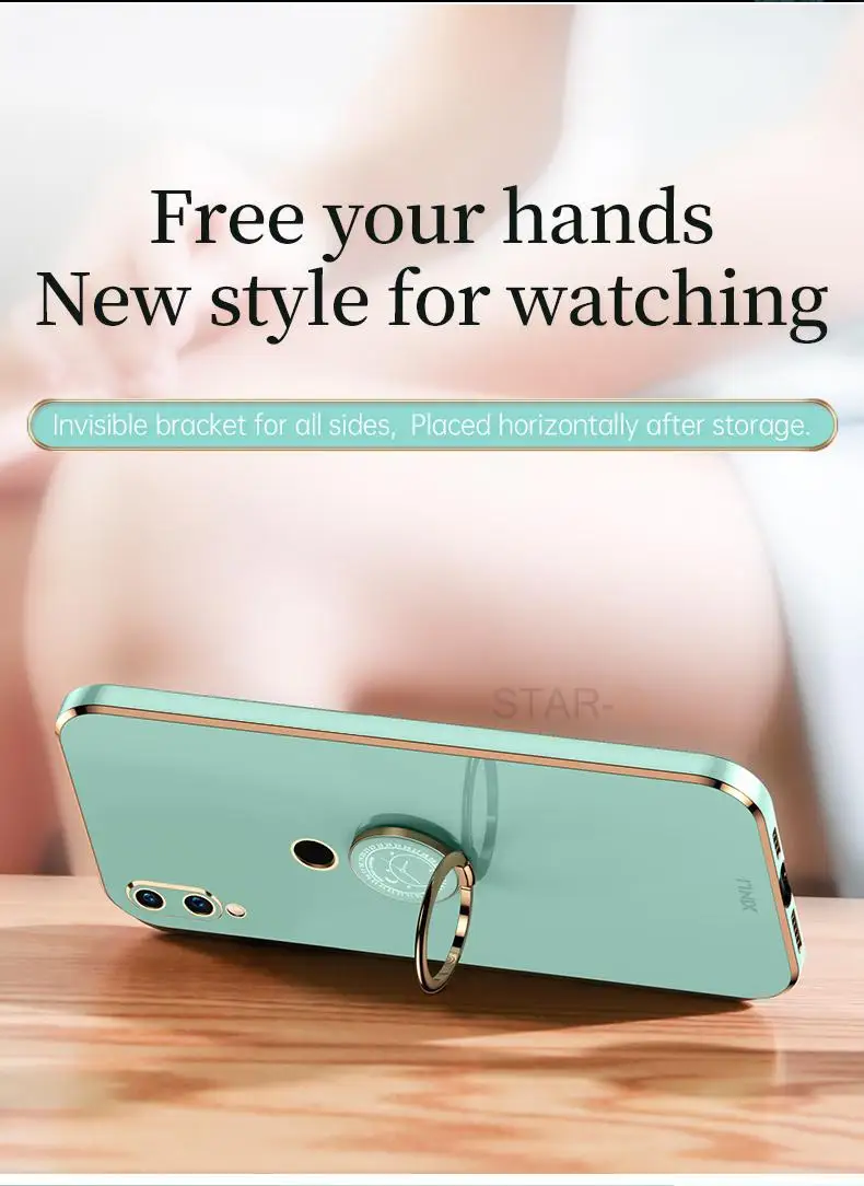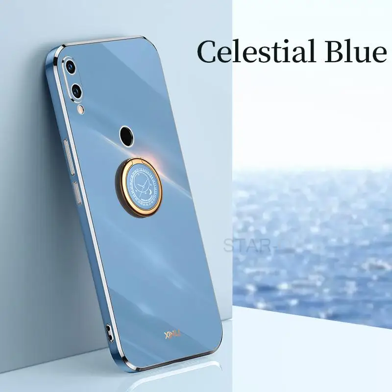 Чехол для телефона с квадратным кольцом-держателем с покрытием для Xiaomi Redmi Note 7 Pro Xiomi Note7 7pro, роскошный бампер, мягкий силиконовый чехол-подставка