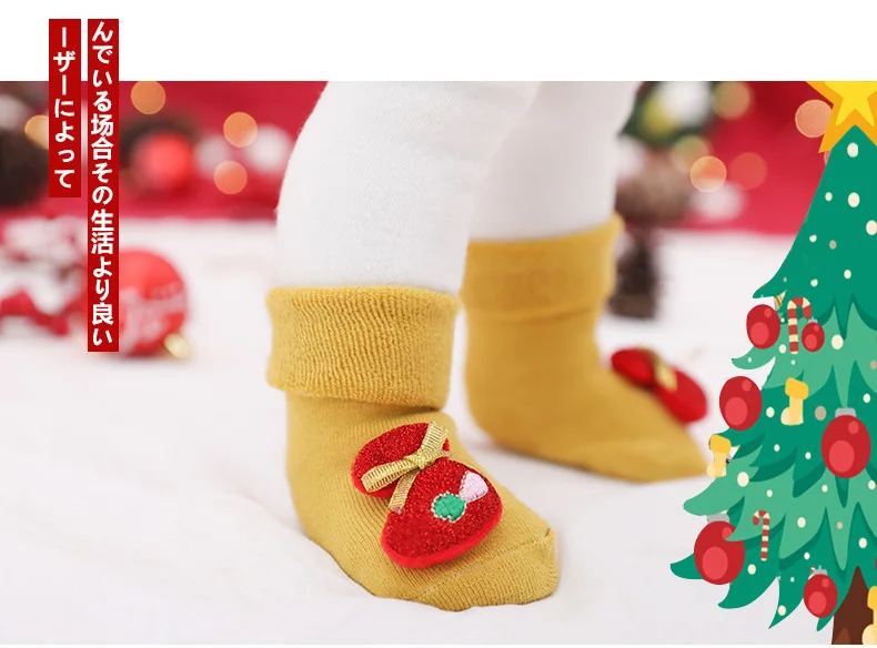 Хлопковые детские носки, рождественские Резиновые Нескользящие носк...