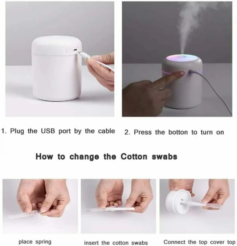 Мини-увлажнитель воздуха, 300 мл, USB, с романтической лампой