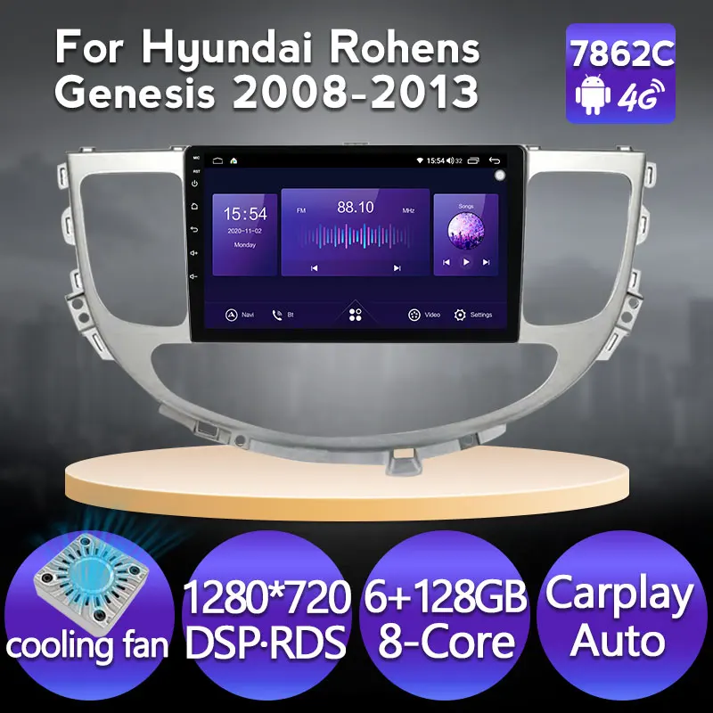 Автомагнитола NaviFly, стерео видеоплеер, GPS головное устройство для Hyundai Rohens Genesis 2008-2013 IPS DSP carplay, навигация 4G, 6 ГБ + 128 ГБ