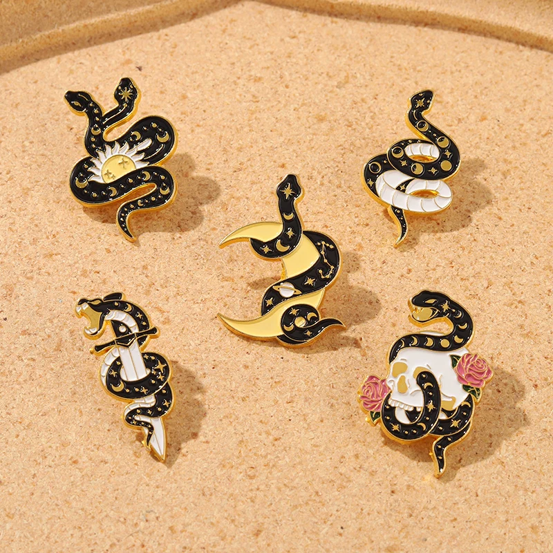 Эмалированная брошь в стиле панк, двухсторонняя, змея, цветок, Череп, небо, космосом, заколка для лацкана, значок, ювелирное изделие, подарок, аксессуары, Бесплатная доставка