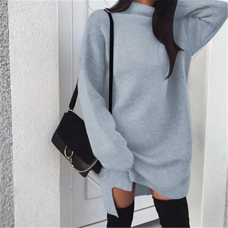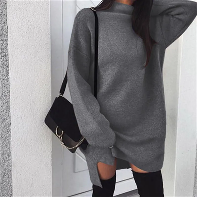 Модное женское платье-свитер, Однотонный свитер-водолазка, длинный Повседневный пуловер с длинным рукавом, платье-водолазка, женское платье-свитер
