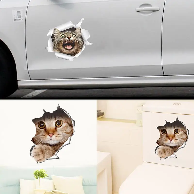 3D Наклейка на стену в виде кошки, наклейка на крышку унитаза для ванной комнаты, домашний и офисный декор, креативные простые маленькие наклейки