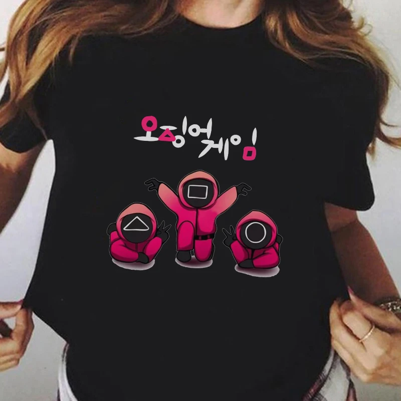 Мужские и женские мужские футболки Kang Sae Byeok, футболка с принтом кальмара, игровая футболка для косплея, черная футболка с круглым вырезом, корейские Топы