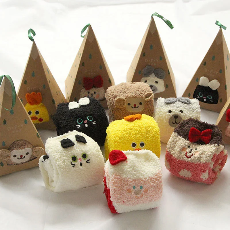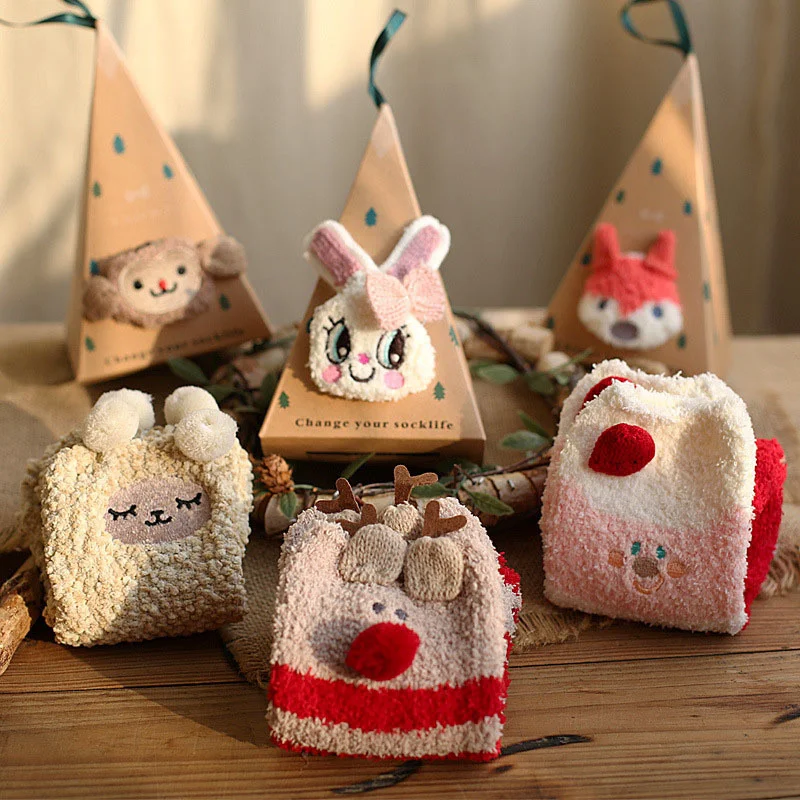 Новинка 2021, носки из кораллового флиса в подарочной коробке, зимние толстые носки с мультяшной вышивкой, рождественские носки, теплые носки с Санта-Клаусом, бесплатная доставка