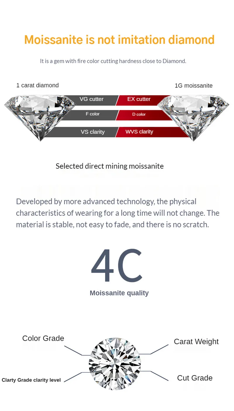 Женские серьги из серебра 925 пробы с муассанитом, 100%-1 карат