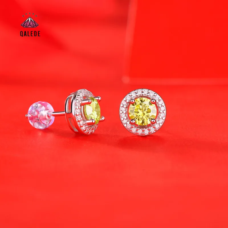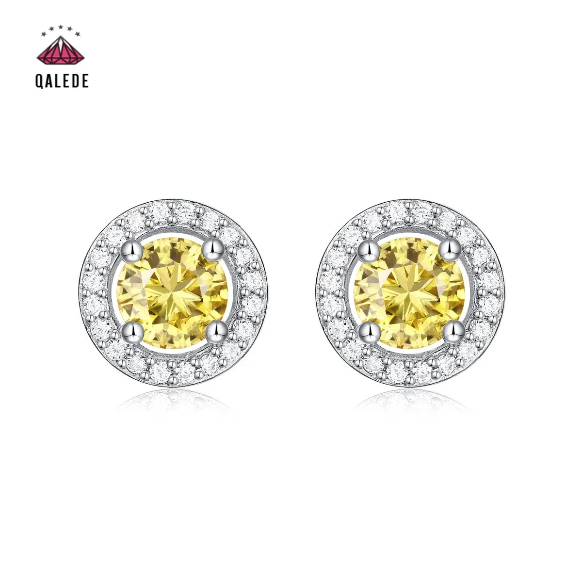 Женские серьги QALEDE, серебряные серьги 925 пробы, женские серьги-гвоздики с желтыми бриллиантами, праздничный подарок