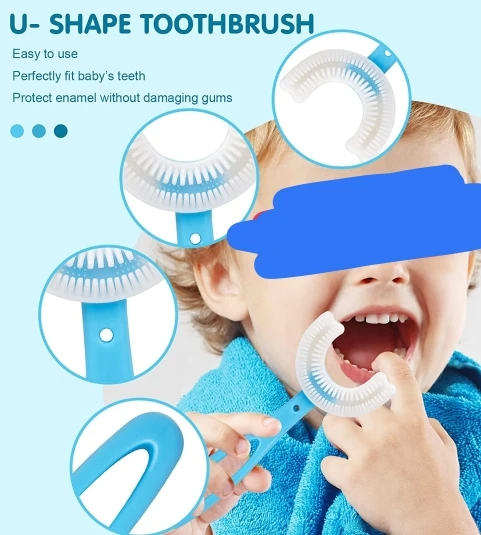360 градусов, U-образная детская зубная щетка, детская Чистящая Щетка, удобная силиконовая детская зубная щетка, инструмент для полости рта