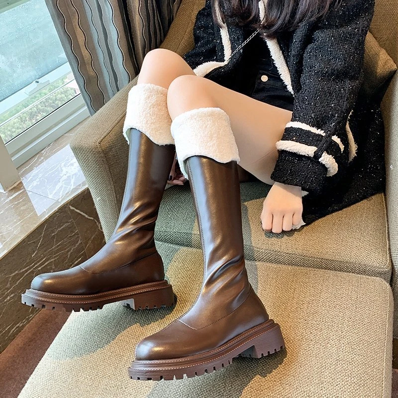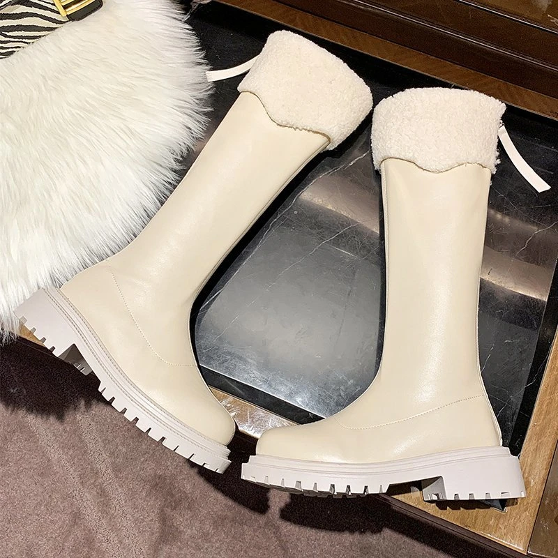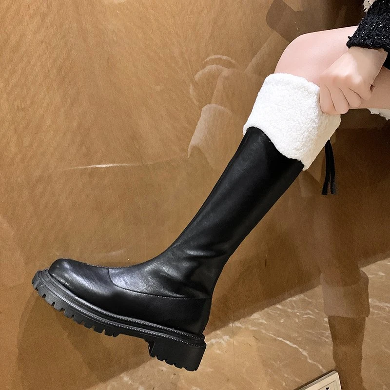 Женские меховые ботинки челси на среднем каблуке, зимние короткие плюшевые теплые готические Нескользящие ботинки, модная зимняя мотоциклетная обувь на платформе, 2022