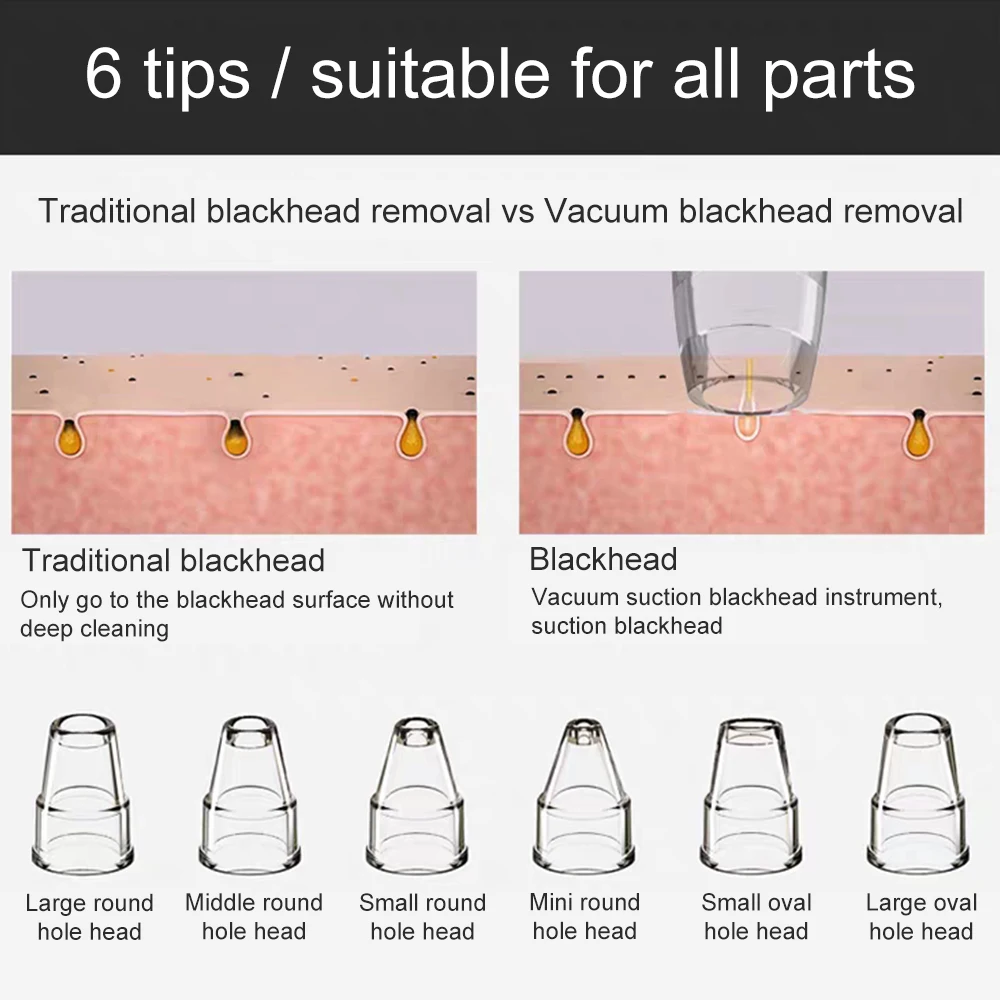 Снимите клубнику с носа, зонды могут тщательно очистить поры, удалить черные головки, вытянуть поры и затянуть.3 режима подходят для всех типов кожи (сухая кожа/жирная кожа/нормальная кожа)3 регулируемых уровня всасывания (1/2/3 шестерни)6 сменных зондов, подходит для всех частей кожи телаЖК-дисплей высокой четкостиВакуумная технология отрицательного давления, сильное всасываниеИспользуйте здоровые прозрачные бесцветные экологически чистые присоски