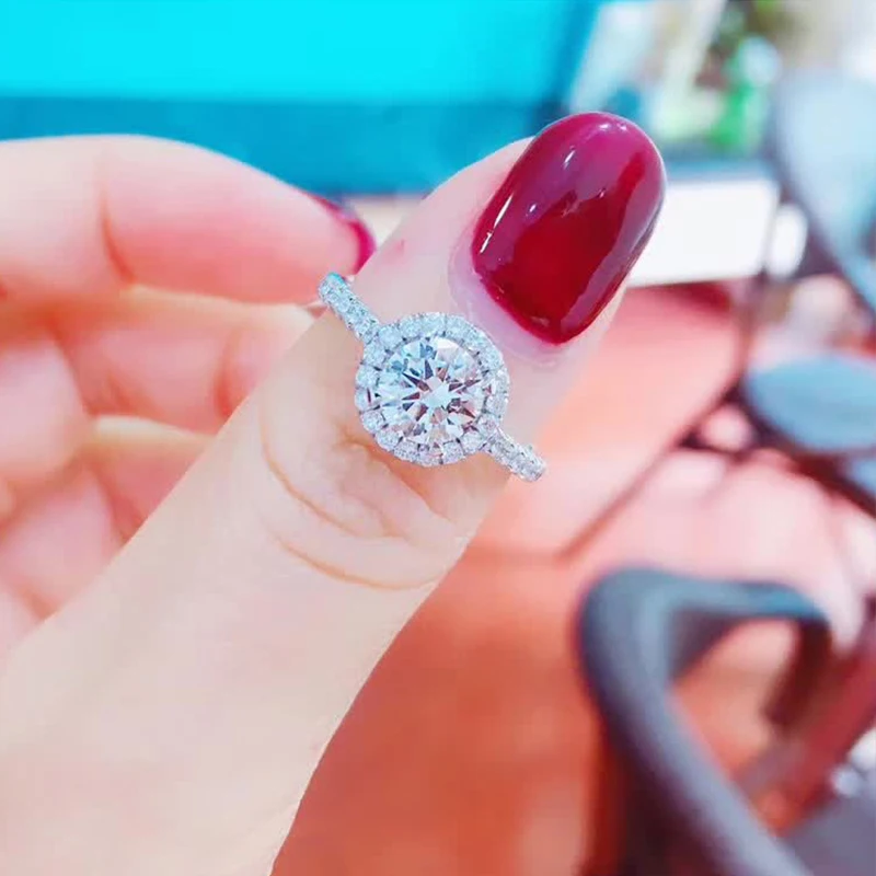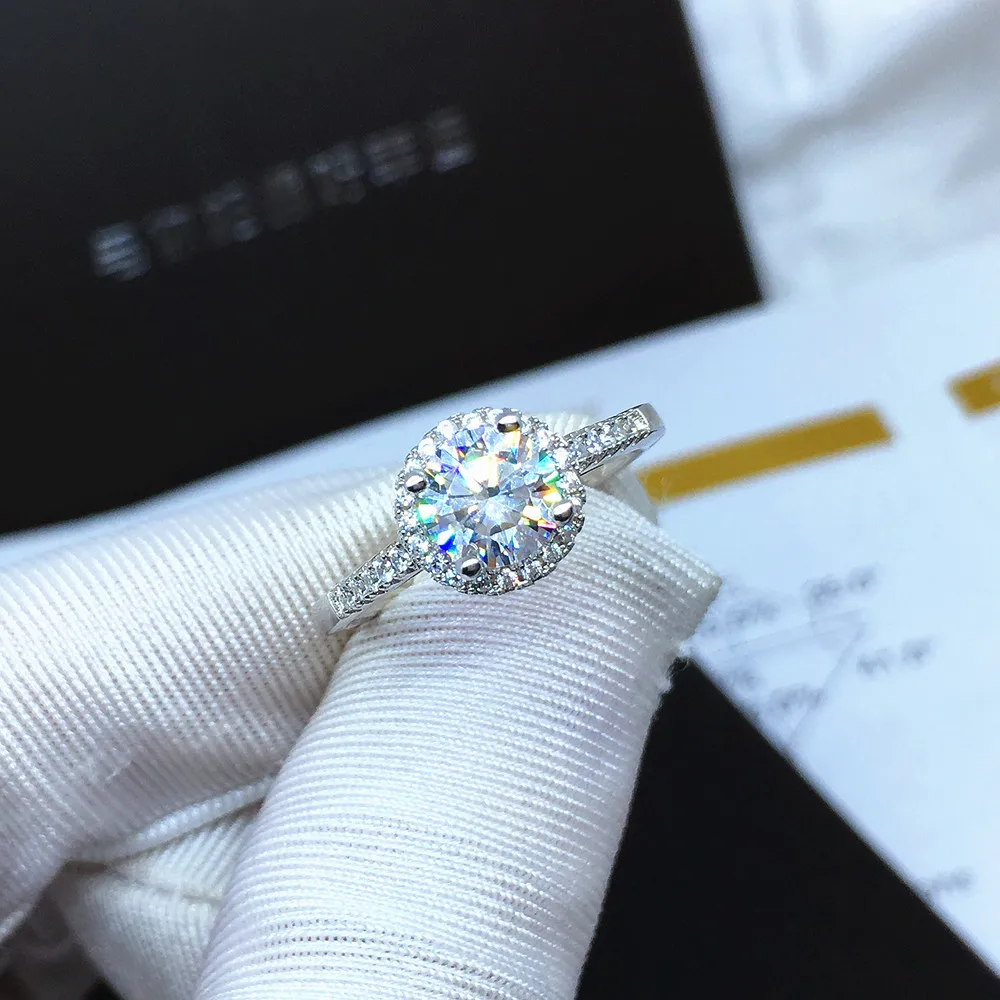 Обручальные кольца из настоящего моиссанита, 100% Стерлинговое Серебро, 0.5ct 1ct 2ct, круглые бриллиантовые обручальные кольца Halo