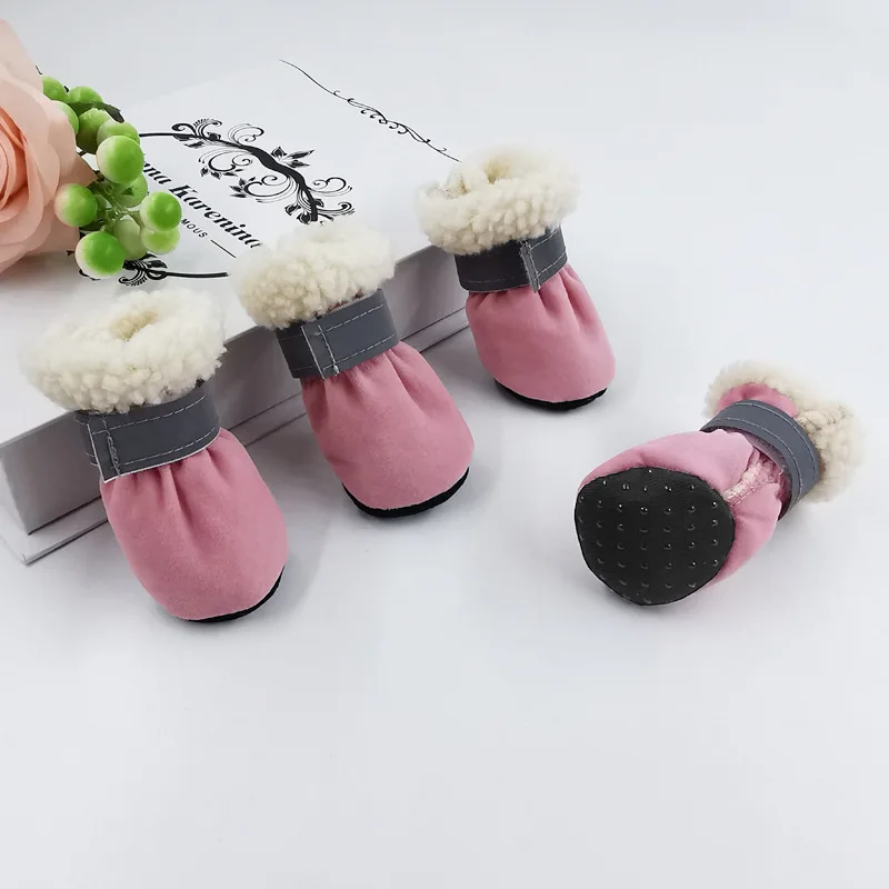 Зимняя обувь для домашних животных, собак, кошек, хлопковая обувь, ботинки для снега Тедди, светоотражающие полоски, Нескользящие ботинки для собак, обувь для собаки