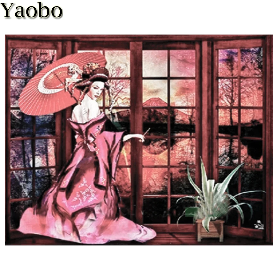 Алмазная 5D картина сделай сам, алмазная вышивка, кимоно, Женская мозаика, японская гейша, полная стразы, вышивка, окно, домашний декор