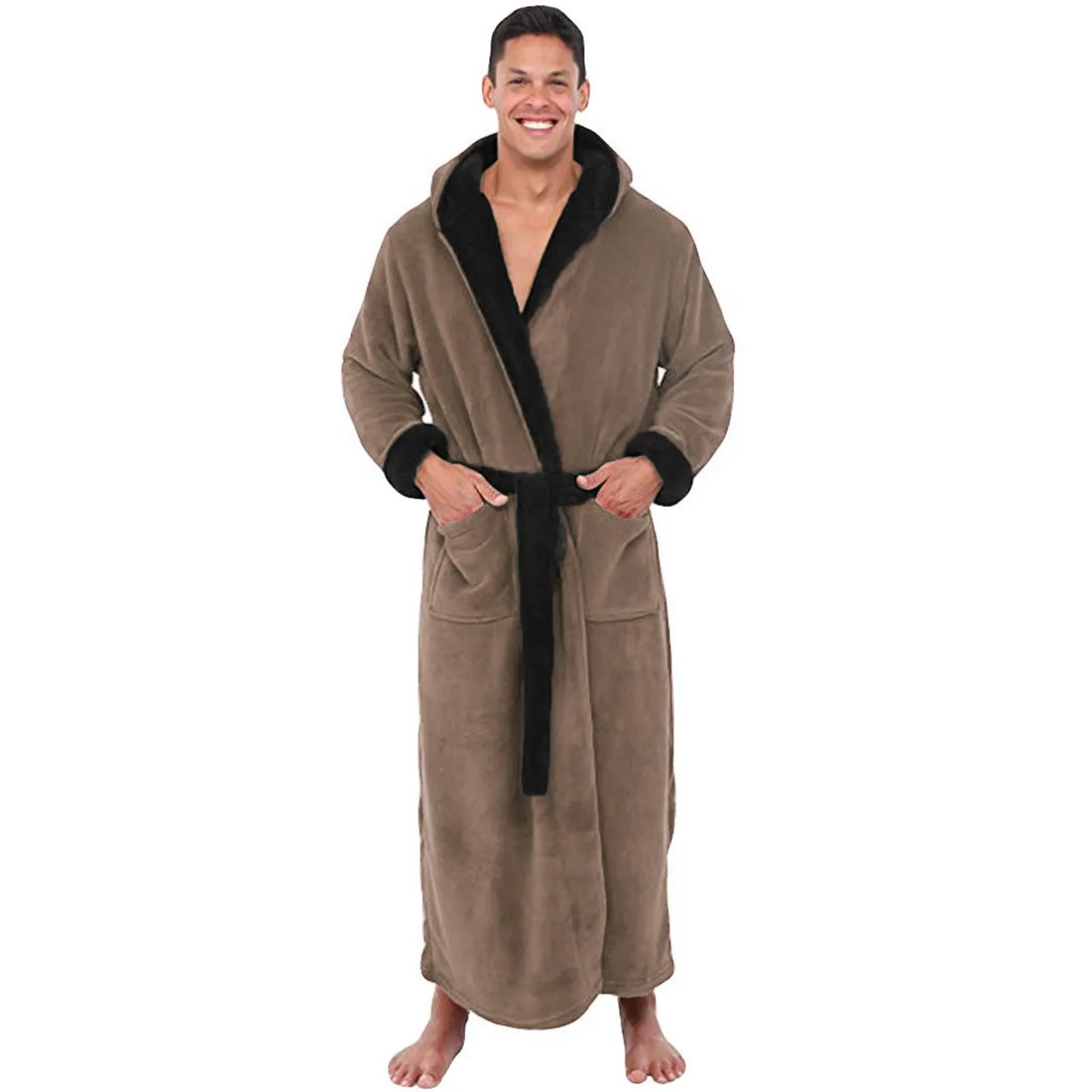 Мужской фланелевый Халат с капюшоном, плотный теплый халат, мужской...