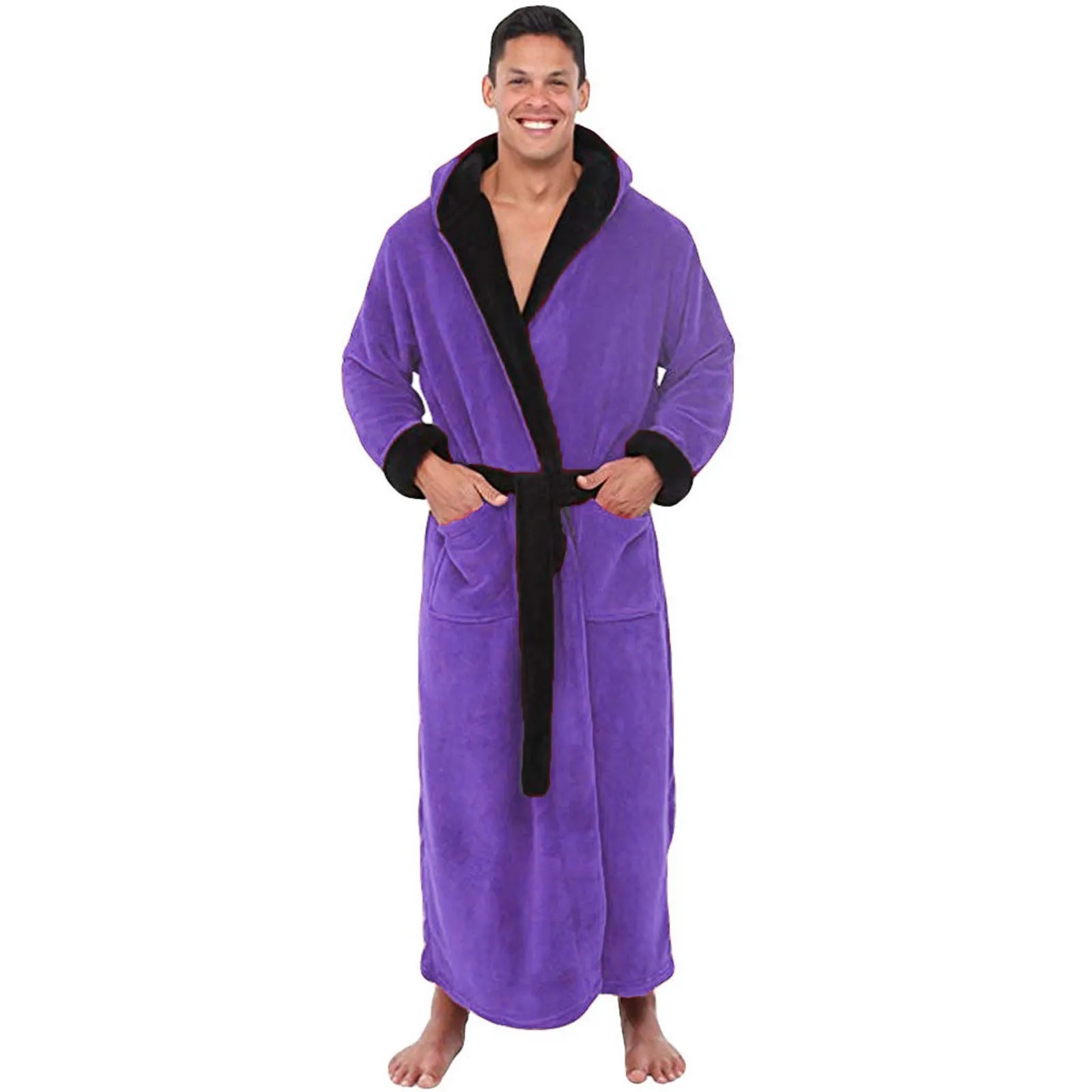 Мужской фланелевый банный халат с капюшоном, зимний халат, плотный ...