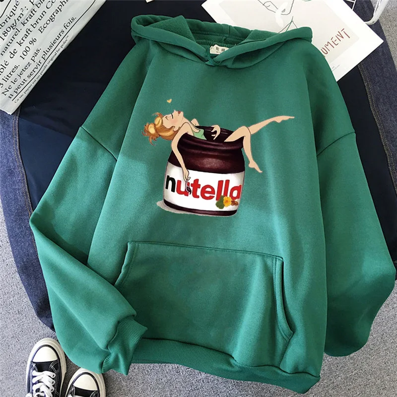 Толстовка женская с капюшоном, модный простой пуловер с мультяшным принтом Нутеллы, свободная одежда с длинным рукавом, на осень