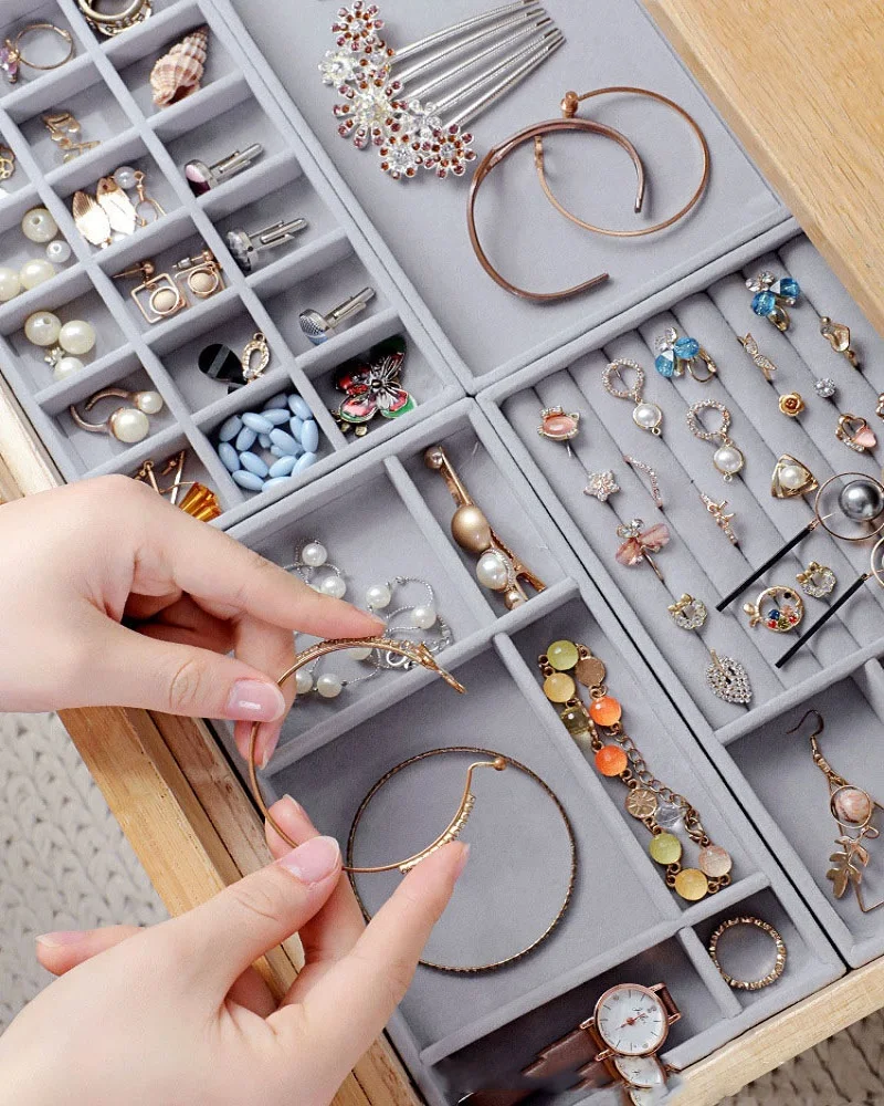 1. Изготовленные из высококачественного бархата, лотки-органайзеры мягкие на ощупь и элегантные, защищают ваши ювелирные изделия от любых повреждений.