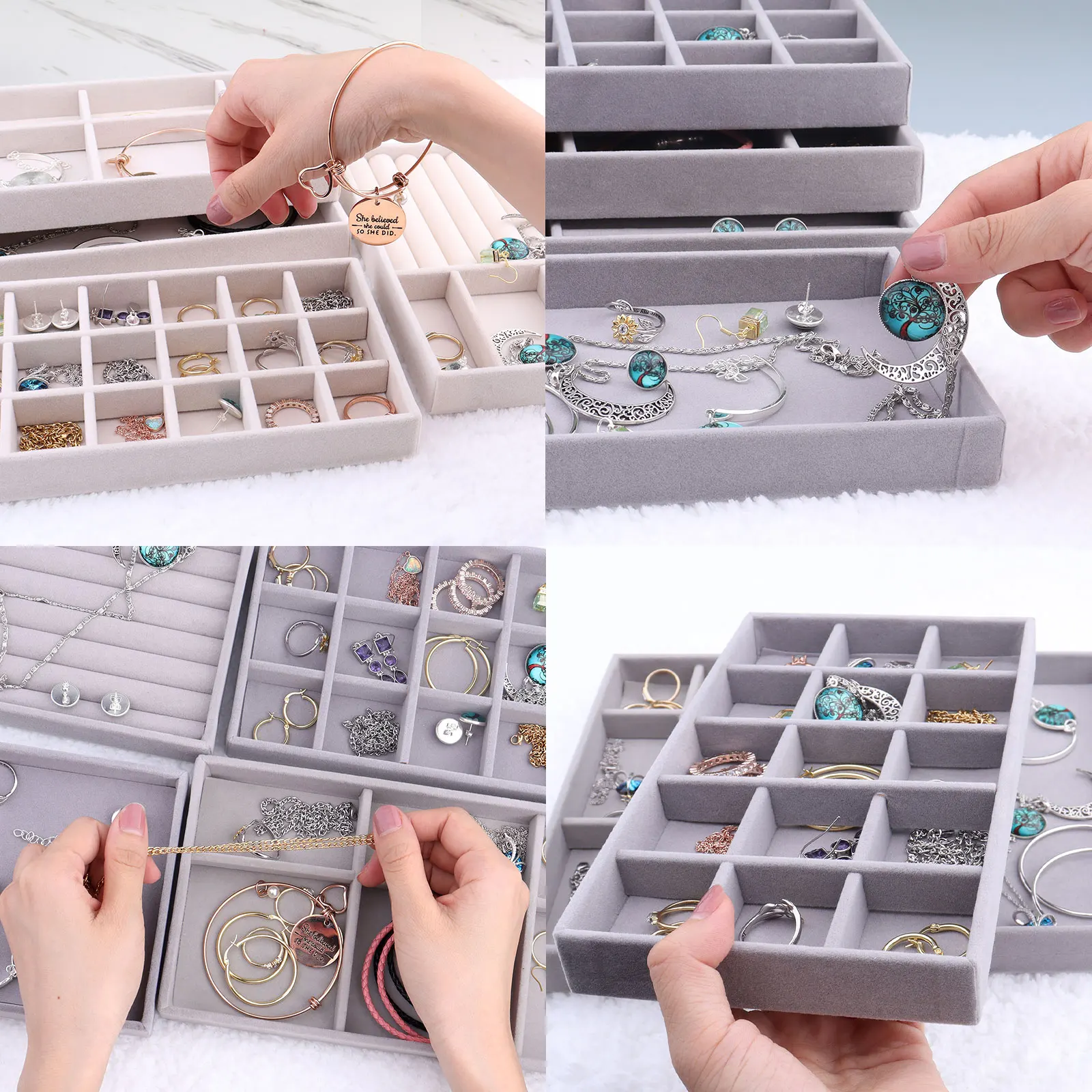 Бархатный Штабелируемый органайзер для ювелирных изделий, поднос для украшений, Лидер продаж, модный портативный органайзер для ювелирных изделий из бархата