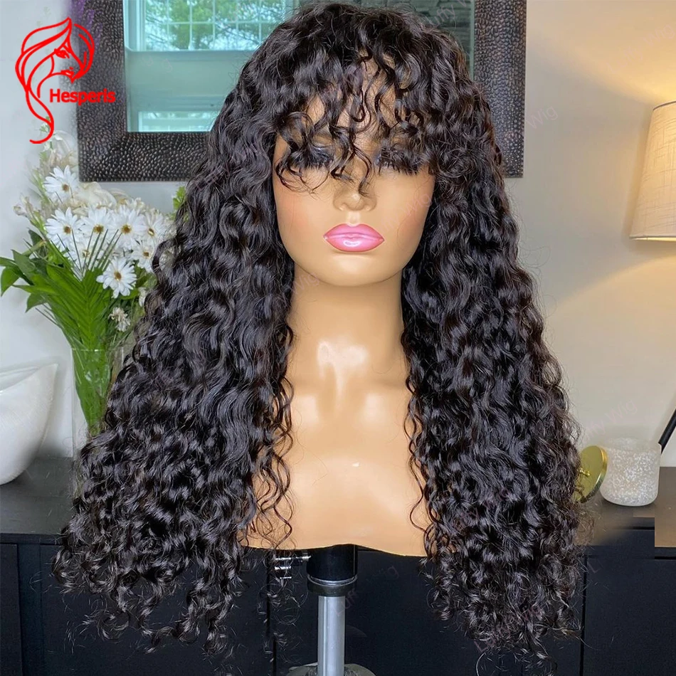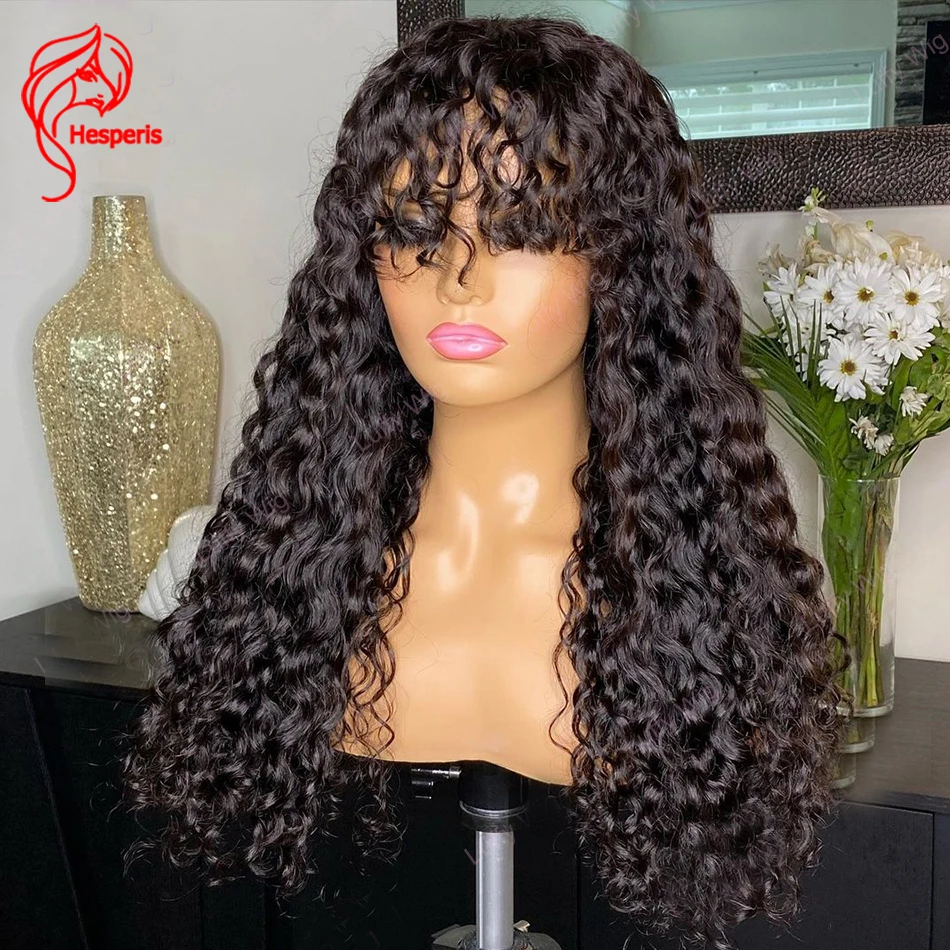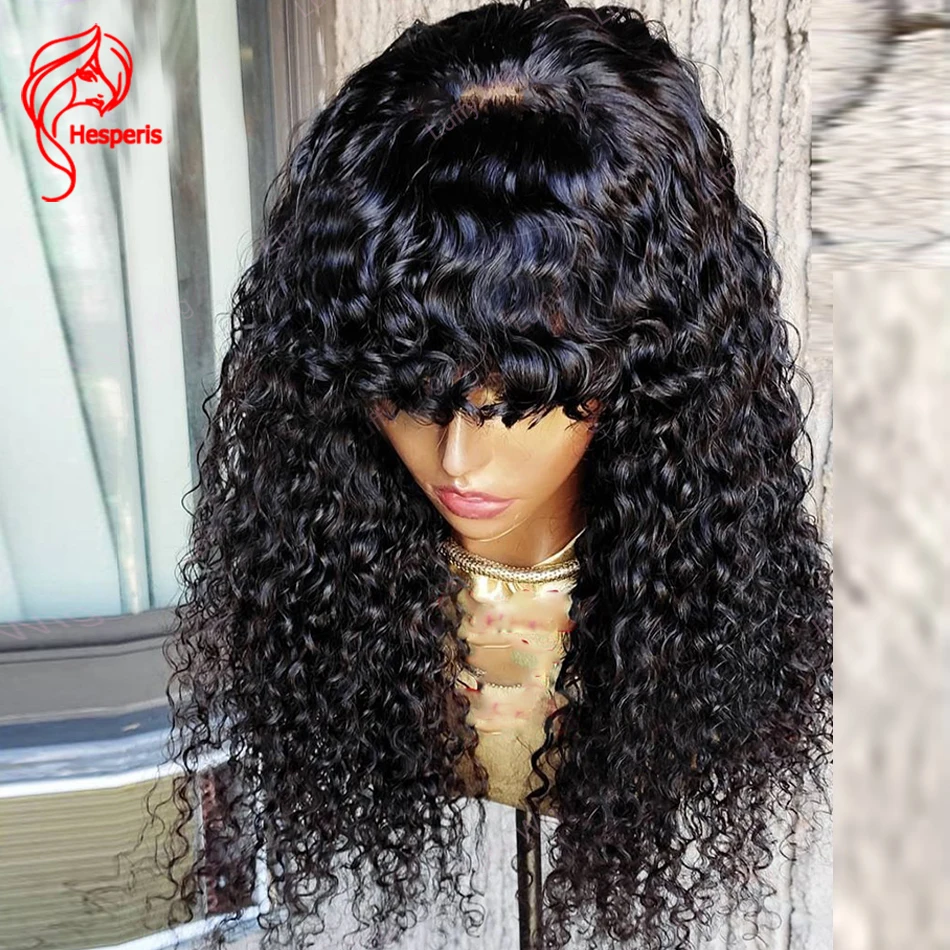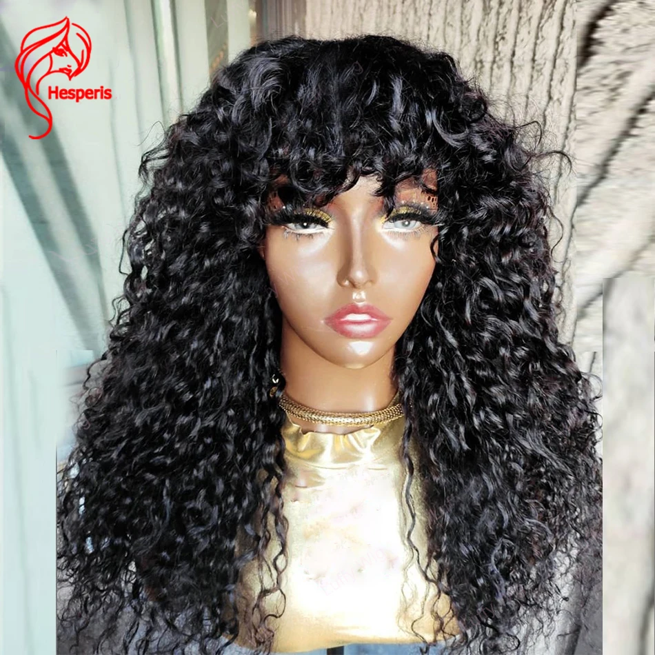 Hesperis 200% вьющиеся человеческие волосы парики с челкой для черных женщин полностью машинное изготовление парик для головы бразильский парик без повреждений человеческие волосы парик