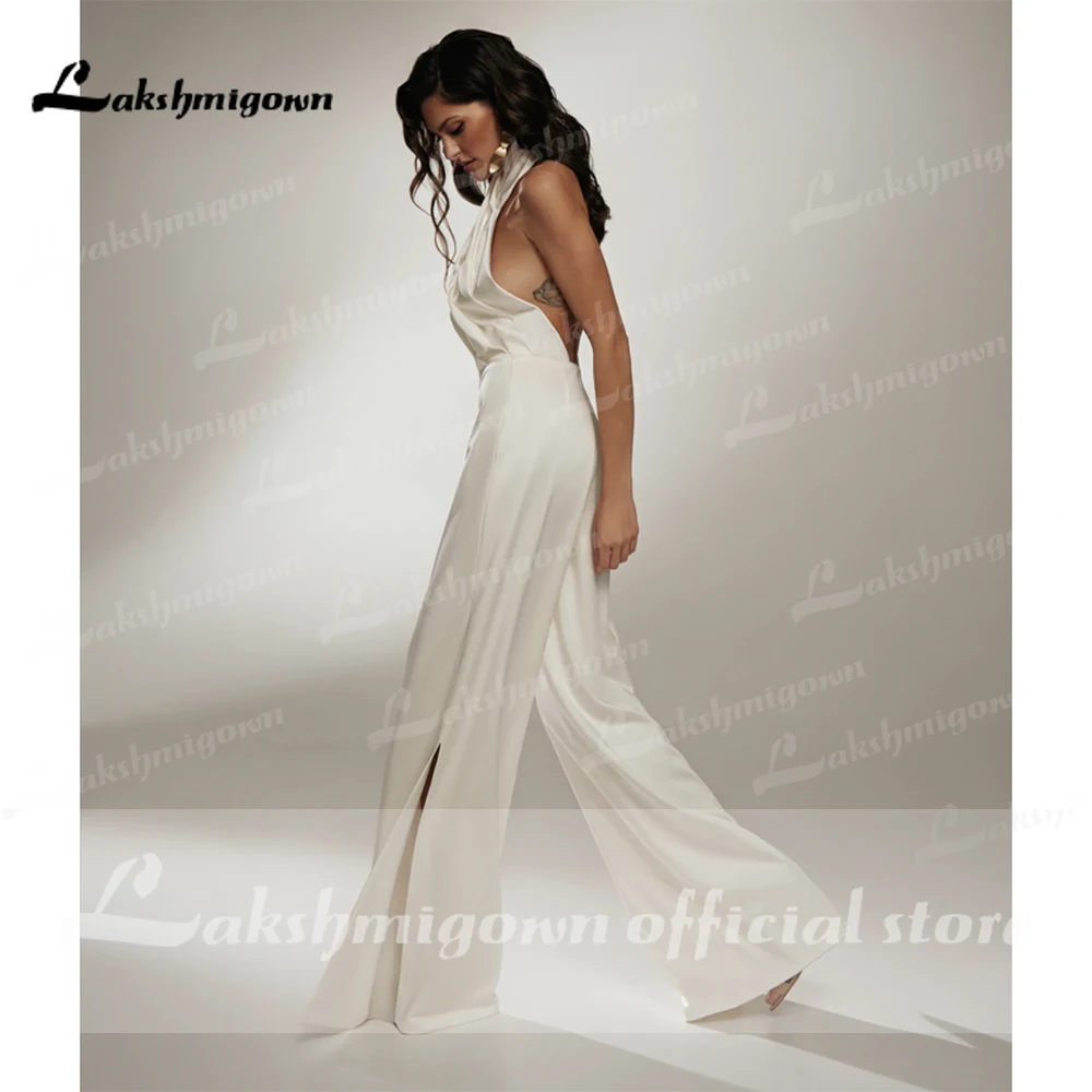 Женский Атласный комбинезон с лямкой на шее