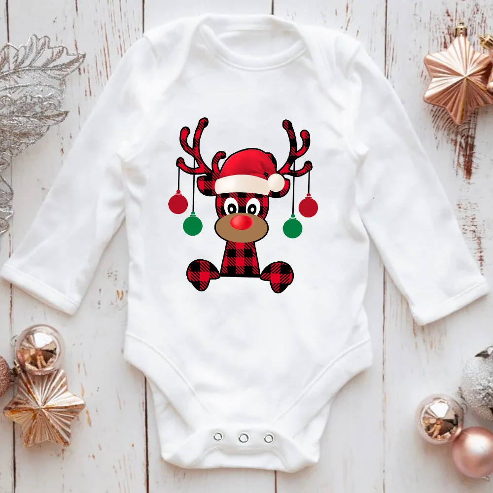 Забавные боди с рождественским оленем для новорожденных; Белые комбинезоны с длинными рукавами для мальчиков и девочек; Удобные детские комбинезоны; Рождественские подарки