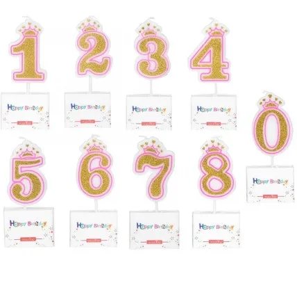 Блестящие золотые розовыесиние свечи в виде цифр на день рождения д...