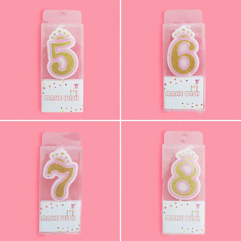 Светящиеся золотые, розовыесиние свечи в виде цифр на день рождения для детей и взрослых девочек, корона для торта, 1 шт.