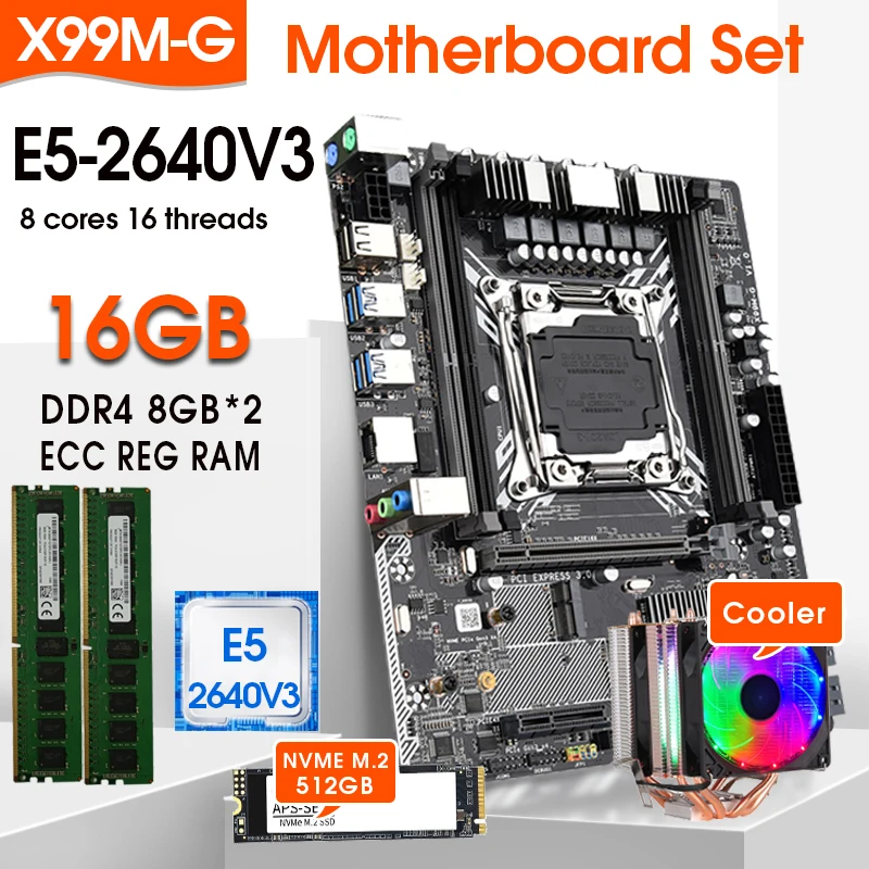 Флэш-материнская плата X99M-G E5 2640 v3 ЦП 2 шт. x 8 ГБ = 16 ГБ DDR3 2133 МГц память ECC REG набор комбинаций 512 ГБ M.2 SSD с кулером