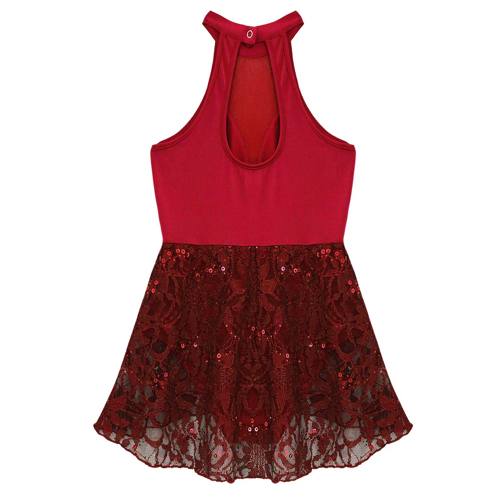 Купальник без рукавов с открытой спиной, с застежкой на одной пуговице на воротнике сзади, с цветочным кружевом и сеткой в стиле пэчворк, декор с пайетками.