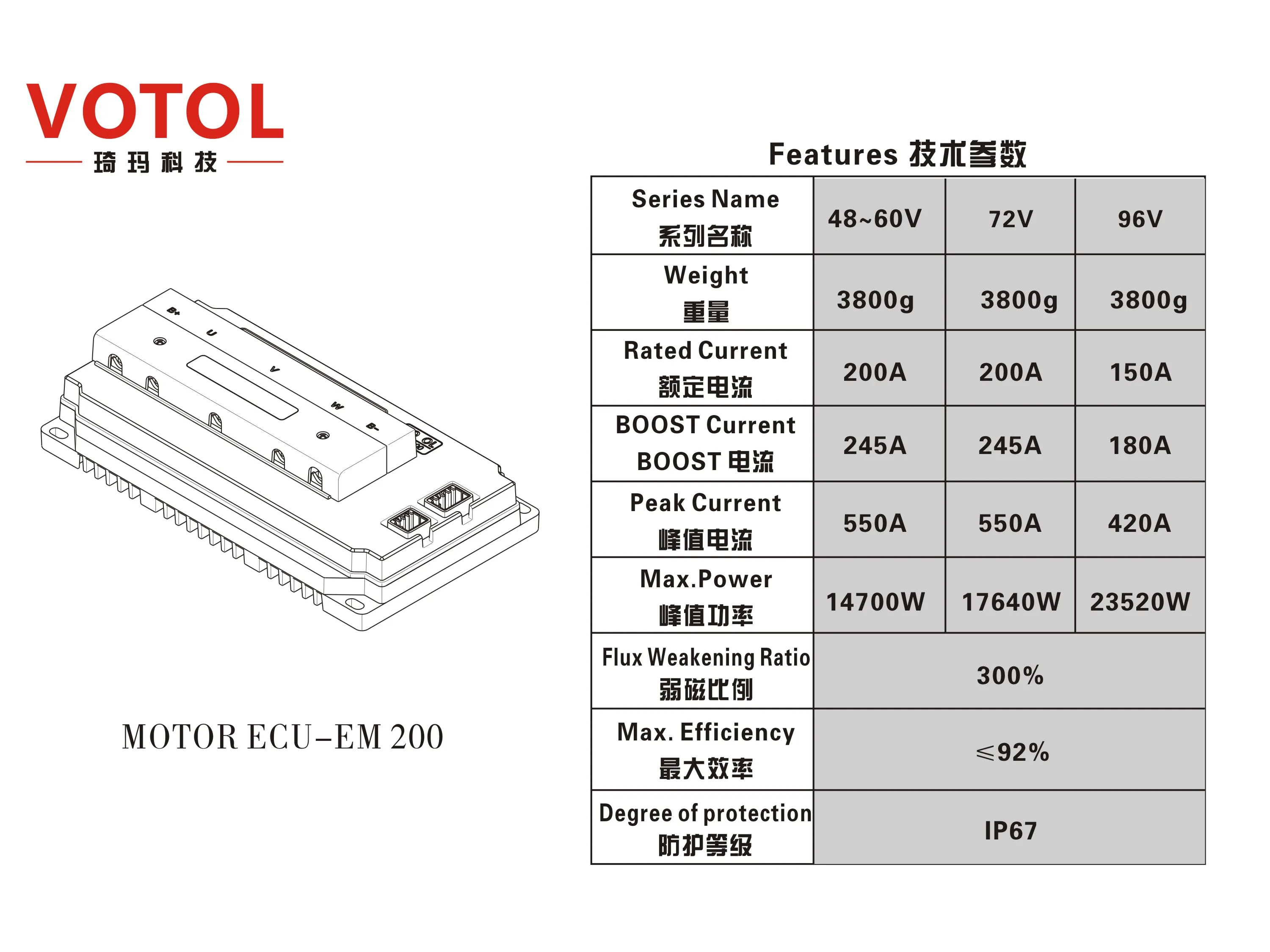 Бесщеточный бесшумный контроллер двигателя VOTOL em-200 72600 для скутера постоянного тока, параметры для скутера FOC, регулируемая обновленная версия