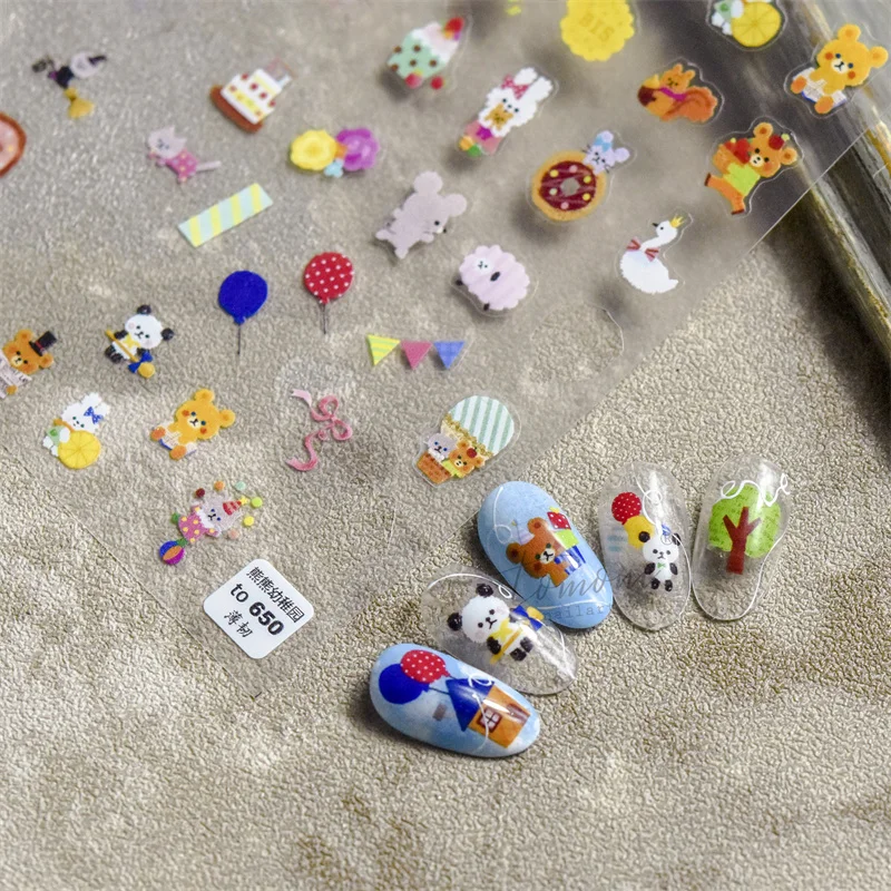 Новинка, 5D наклейки для ногтей, японская ультратонкая принцесса, кружевной медведь, леденец, планета, 3D стерео, рельефный узор для ногтей, декоративные наклейки