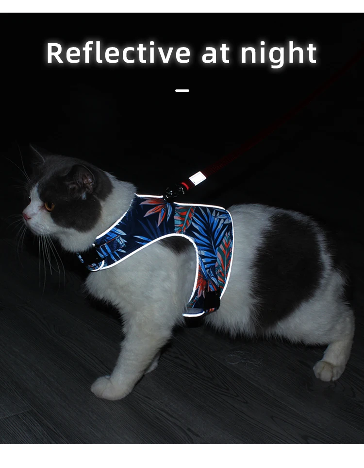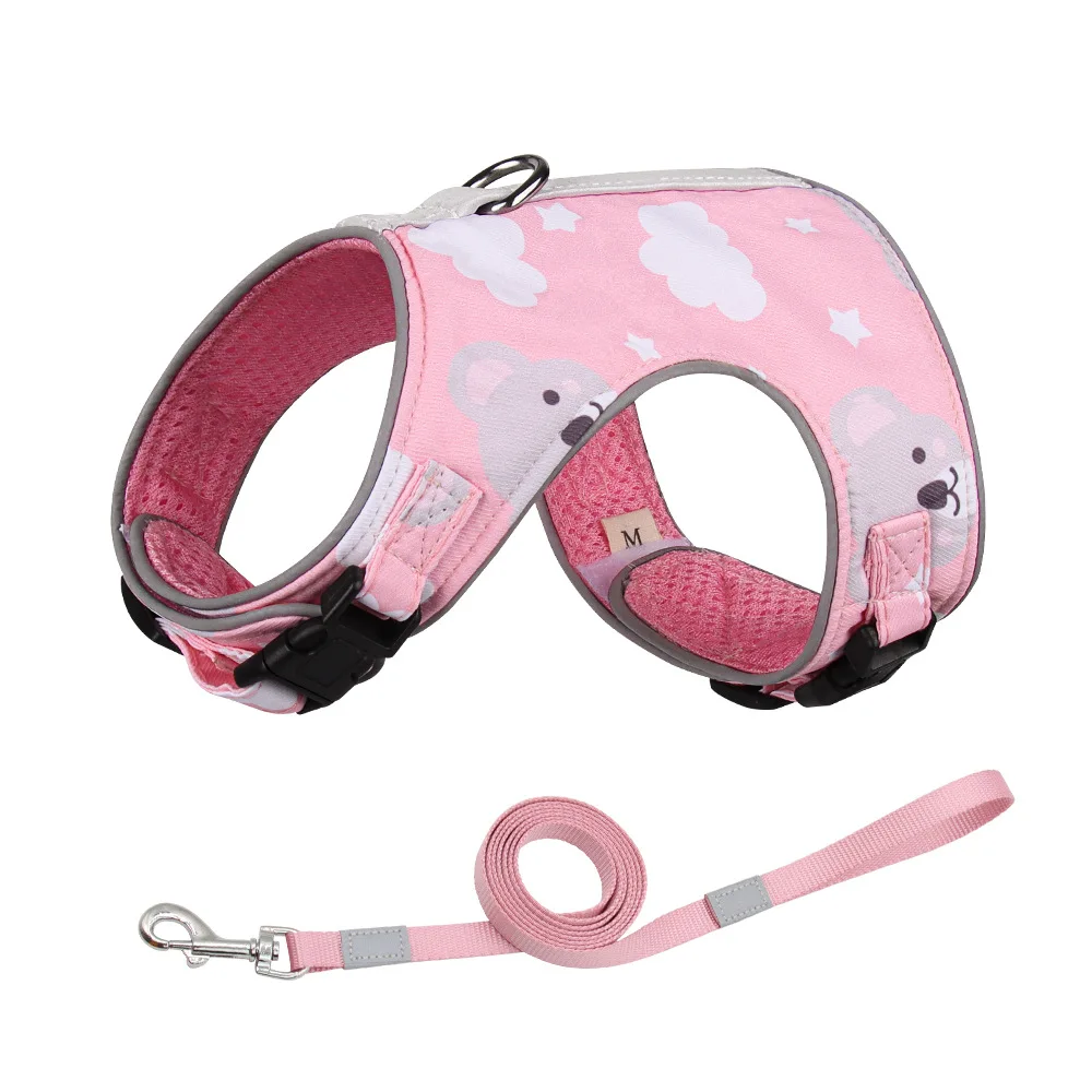 Новый набор из полиэфирного жгута для домашних животных, комплект из светоотражающего троса с дышащей спинкой и грудью, жилет в стиле кошки, нагрудный ремень, маленький и средний
