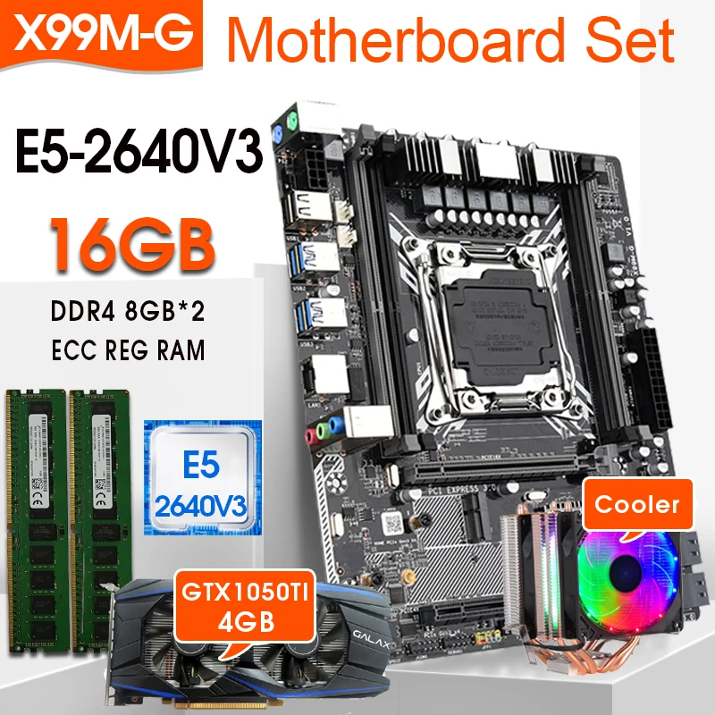 Семейная материнская плата X99M-G E5 2640v 3 CPU 2 шт. x 8 ГБ = 16 ГБ DDR3 2133 МГц ECC REG GTX1050TI 4 Гб видеокарта и охладитель combo