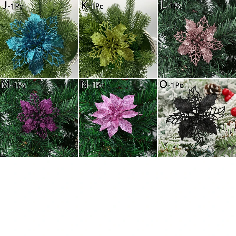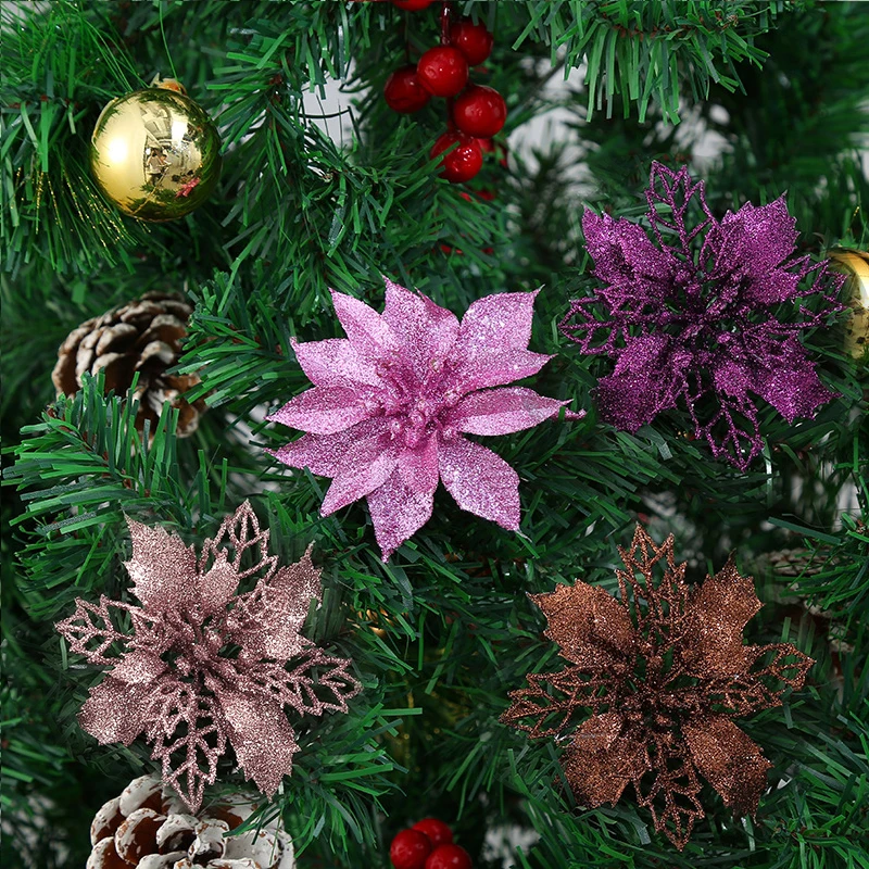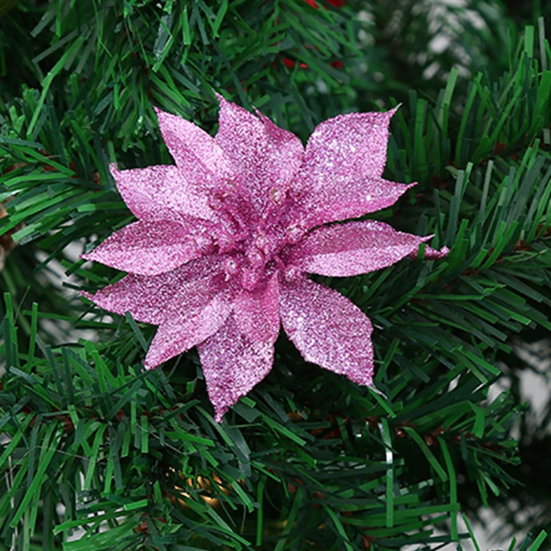 1 шт. рождественские искусственные цветы, блестящие Пуансетии, украшение для рождественской елки, искусственный цветок, Свадебная вечеринка, новогодний декор