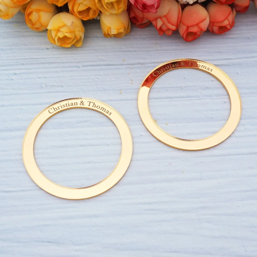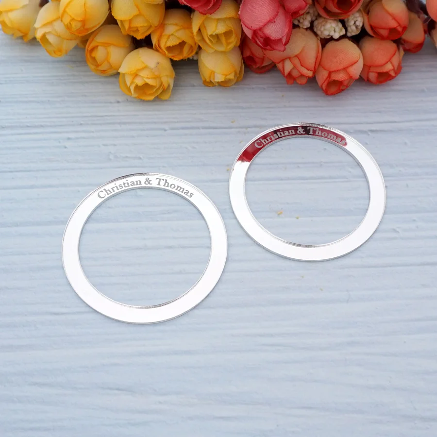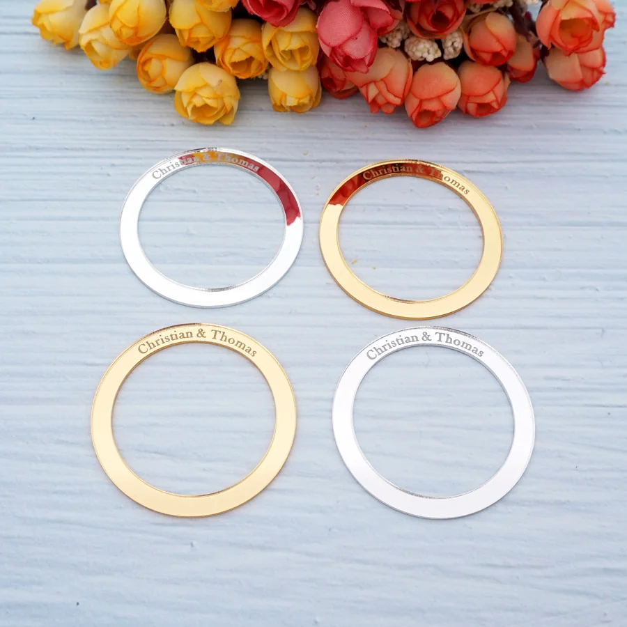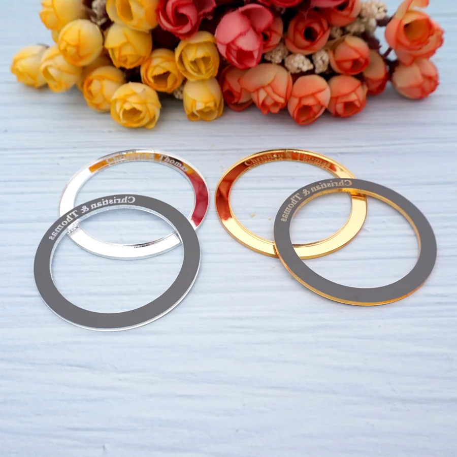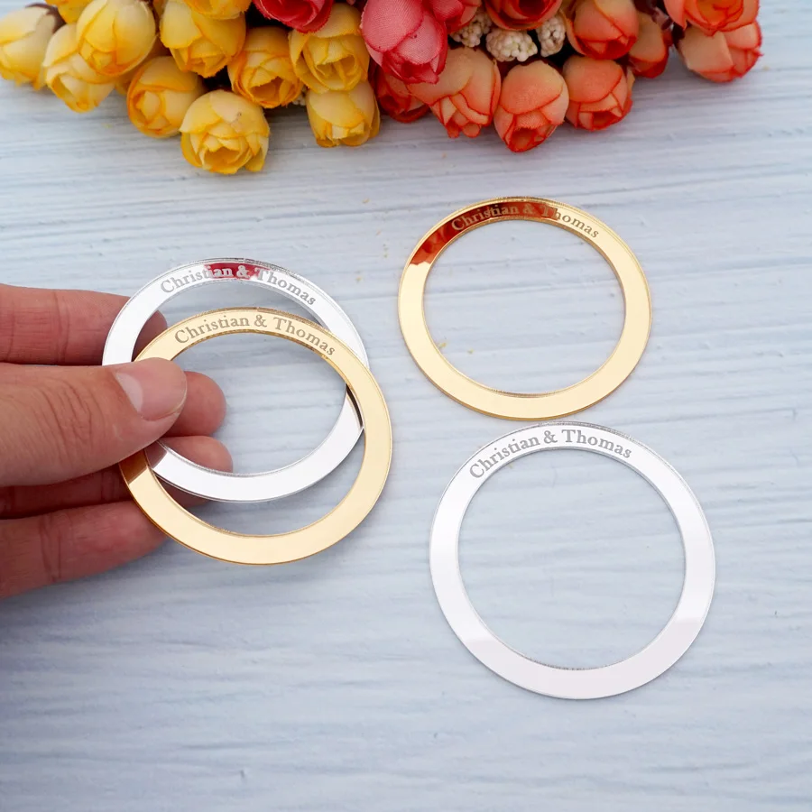20 шт./лот, персонализированные кольца для салфеток, вечерние держатели для помолвки, подарок на заказ, выгравированное имя, круглая форма, держатель для карт, Декор