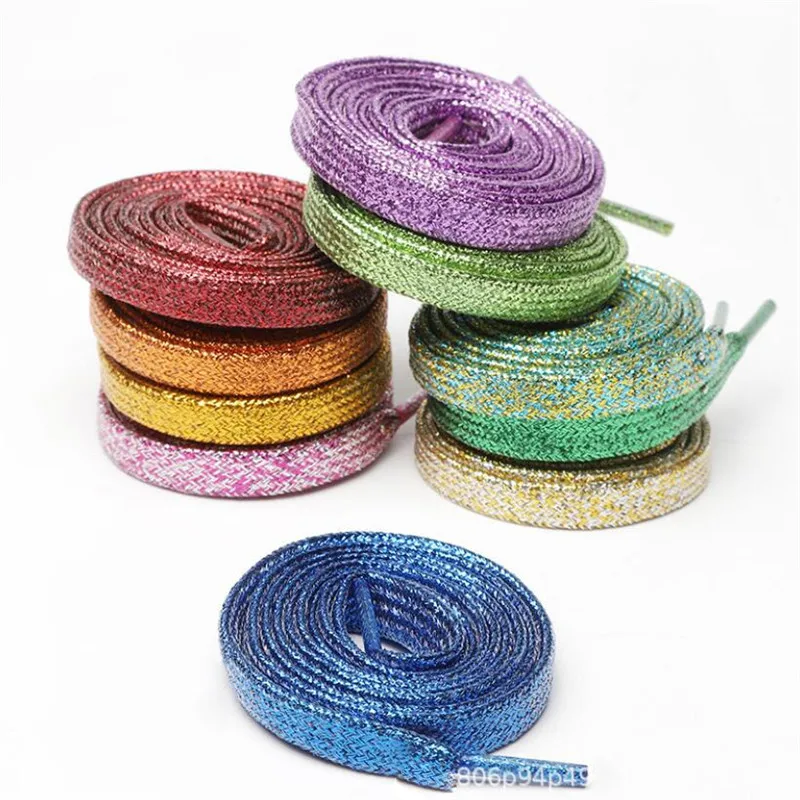 Шнурки унисекс, плоские, блестящие, золотистые, серебристые, черные...