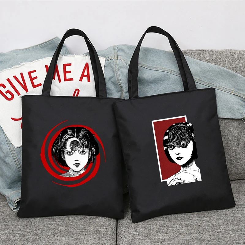 Сумки для покупок Junji Ito, сумка через плечо, холщовая, с ручками, большие женские дизайнерские сумки, многоразовая сумка-тоут с принтом