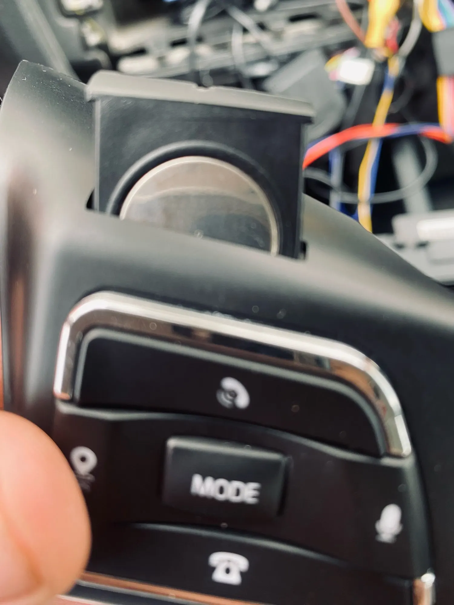 Я снял с носового платка часть моего рулевого колеса, чтобы он соответствовал, и Я приклеил его силиконом из полиуретана, чтобы он оставался только центральной частью, чтобы он не выглядел гротеским и грубым Более эстетично, батареи CR 2032 выглядит хорошо, не горит постоянно ночью, просто выделяется при нажатии Кнопки и будет трудно заменить батареи, когда они разряжаются, но по цене это справедливо, пока это работает хорошо, У него нет инструкций, я оставляю вам положение батарей в лотках, я надеюсь, что они помогут вам