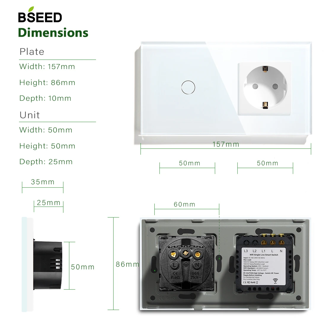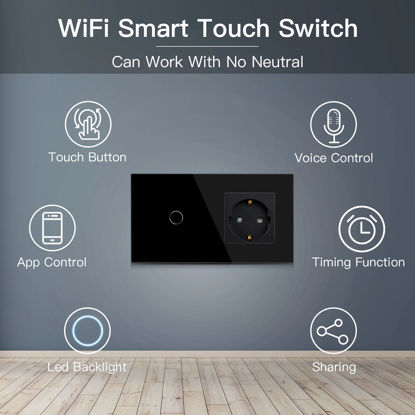Настенный светильник ель BSEED с Wi-Fi, 123 клавиши, 1 канал, одножильный провод, Tuya Google Home, умное Беспроводное управление с розеткой европейского стандарта, без Wi-Fi