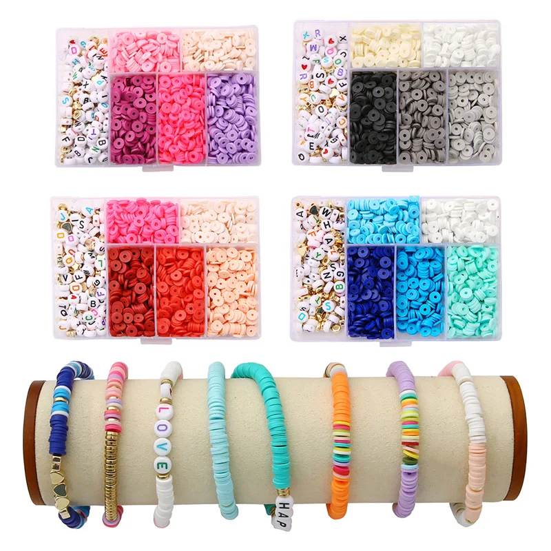 Набор из полимерной глины и акриловых бусин, набор эластичных шармов, веревка, карабин, коробка для самостоятельного изготовления ювелирных изделий Браслеты в богемном стиле, набор сережек