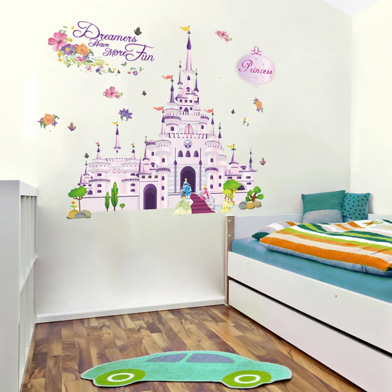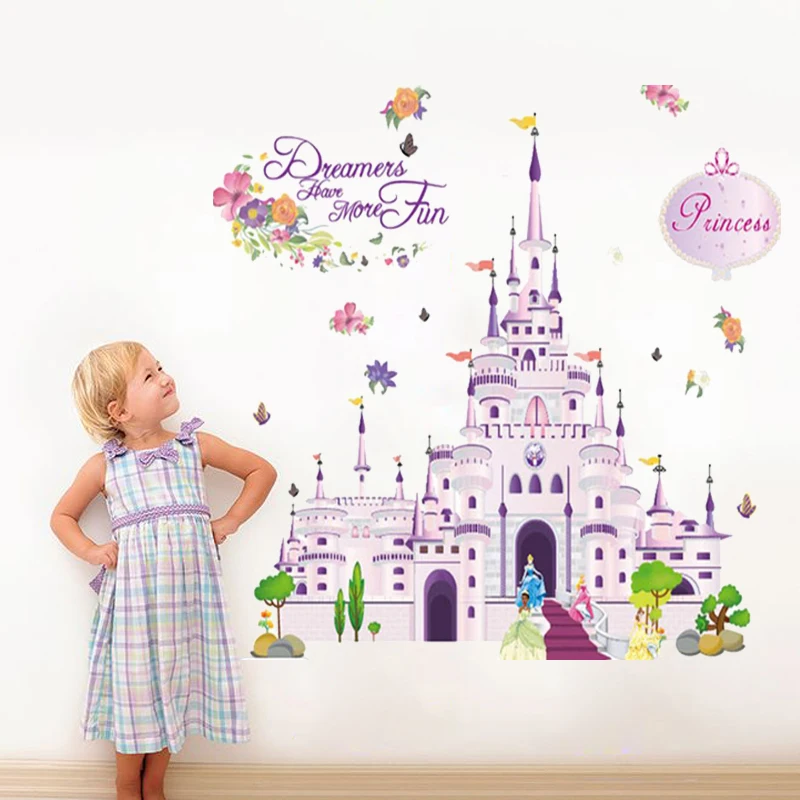 Настенные стикеры в виде замка Принцессы disney 50*70 см, домашний декор для детской комнаты, Мультяшные наклейки на стену, ПВХ роспись, искусство для девочек, подарок