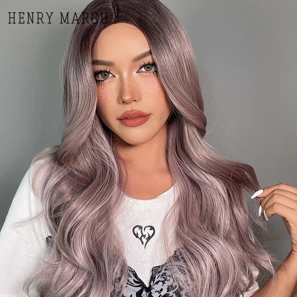 Женские длинные волнистые парики HENRY MARGU, фиолетовые парики для косплея на Хэллоуин, вечерние парики из термостойкого волокна