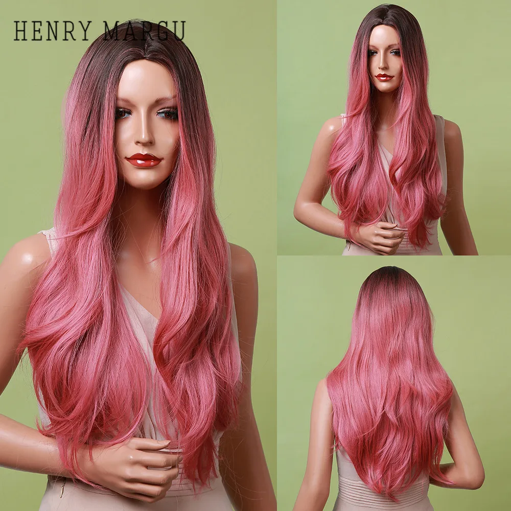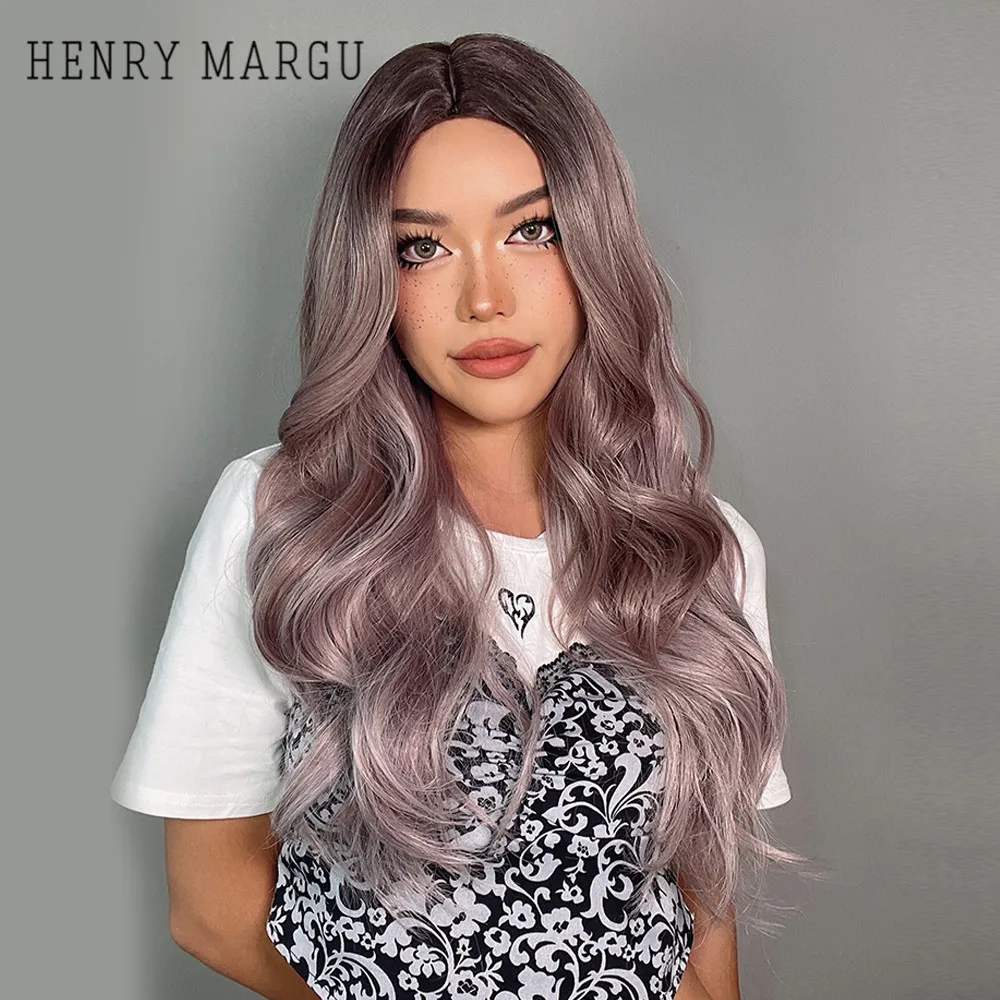 Длинные волнистые синтетические парики henmargu, фиолетовые натуральные волосы для косплея и Хэллоуина, парики из термостойкого волокна для женщин на каждый день, для вечеринки