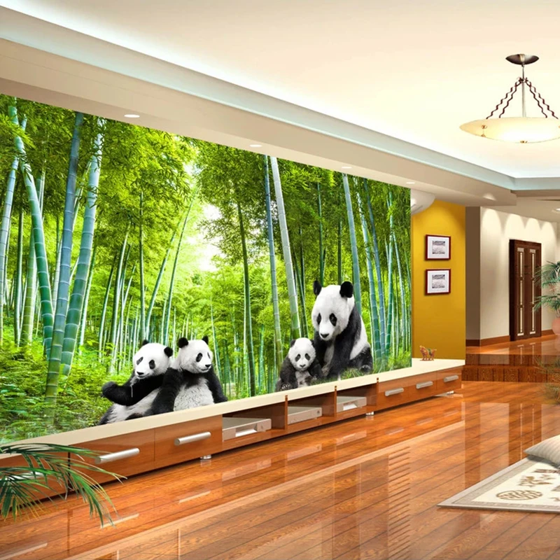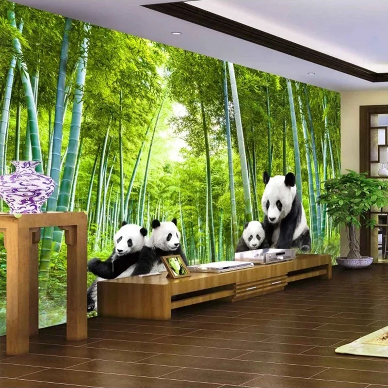 Пользовательские 3D фотообои, зеленый бамбуковый лес плакат панды, картина, Настенная роспись для гостиной, дивана, ТВ, фоновое украшение, картина