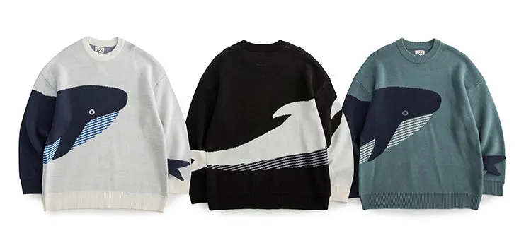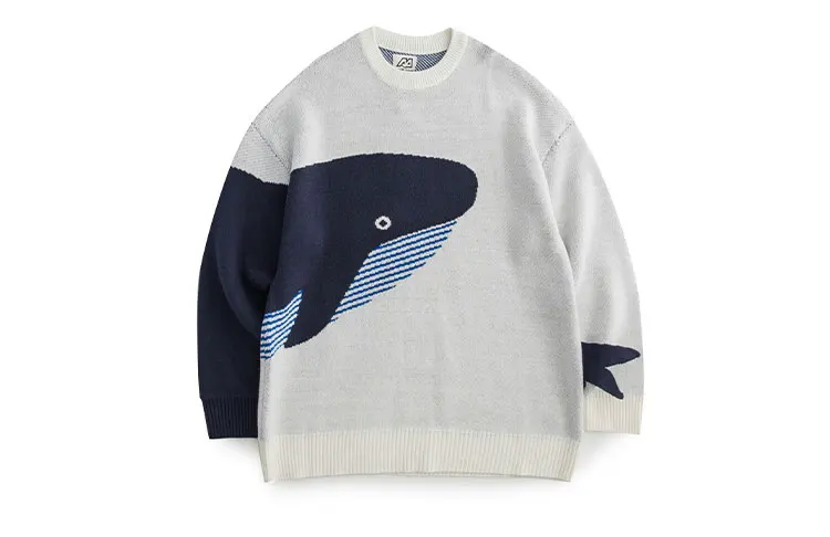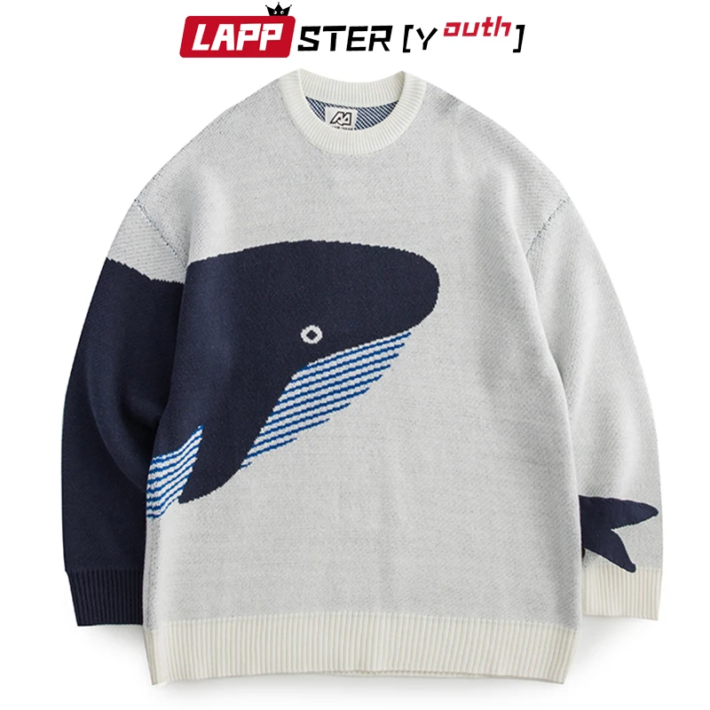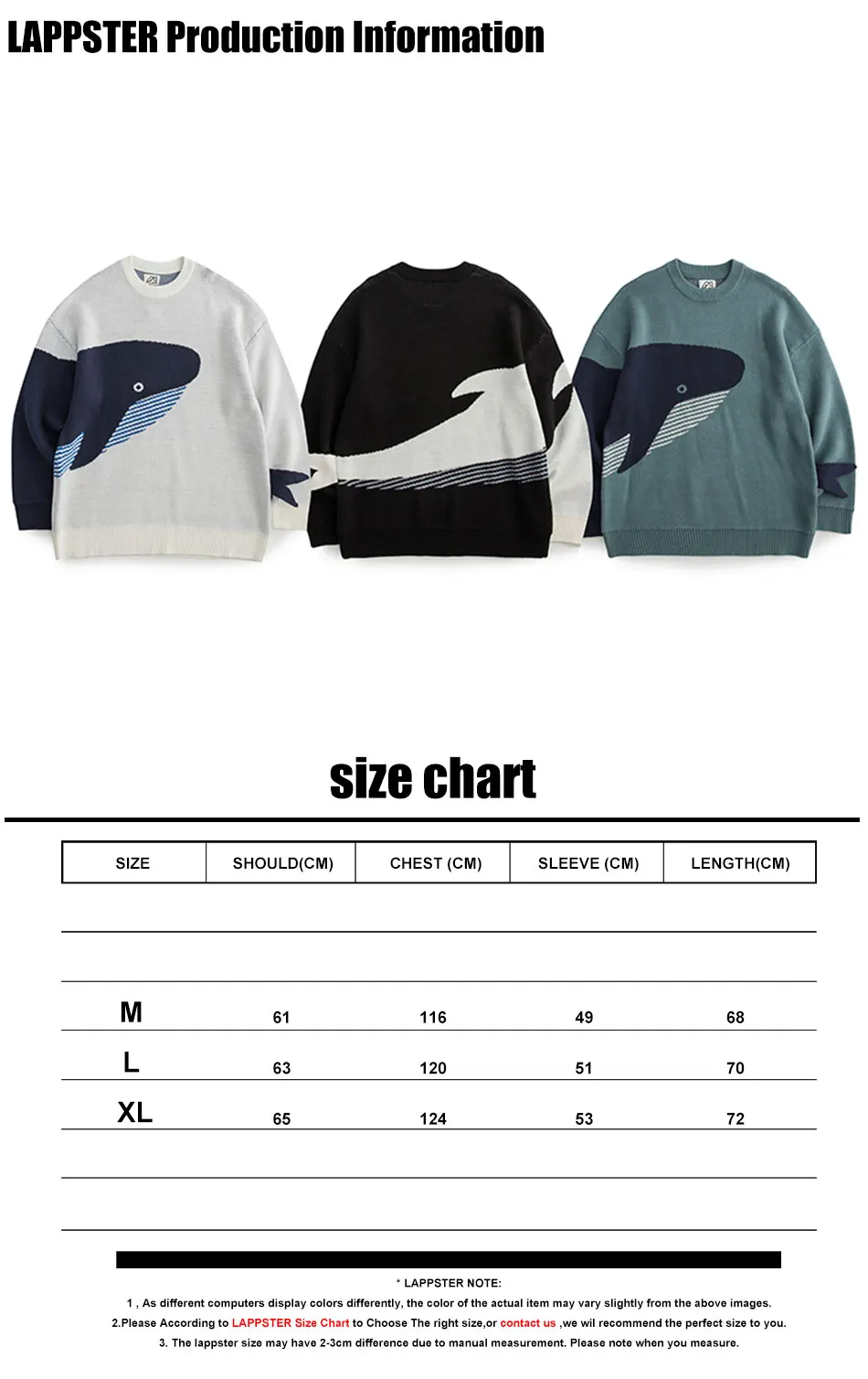 Мужской свитер LAPPSTER-Youth в стиле Харадзюку с графическим изображением синего Кита, 2022, Мужская кавайная винтажная уличная одежда, свитеры, мужской зимний корейский свитер