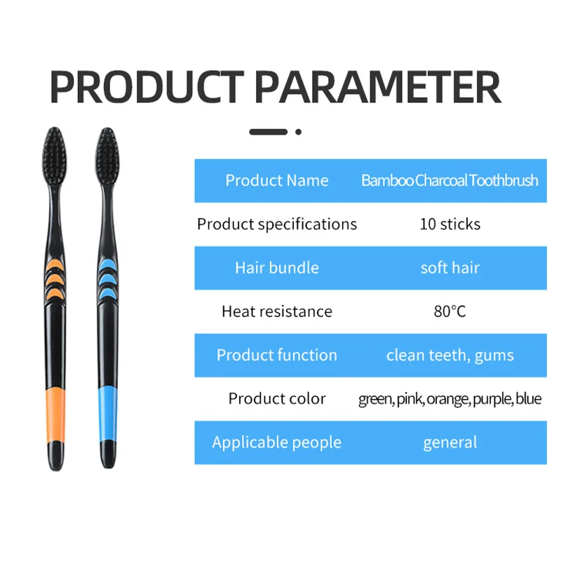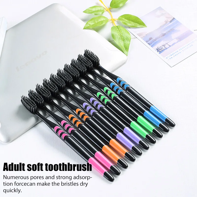 2010 шт. зубная щетка с мягкой щетиной для взрослых, бамбуковый уголь, тонкая зубная щетка для волос, антибактериальная щетка для зубов, глубокая чистка, портативная