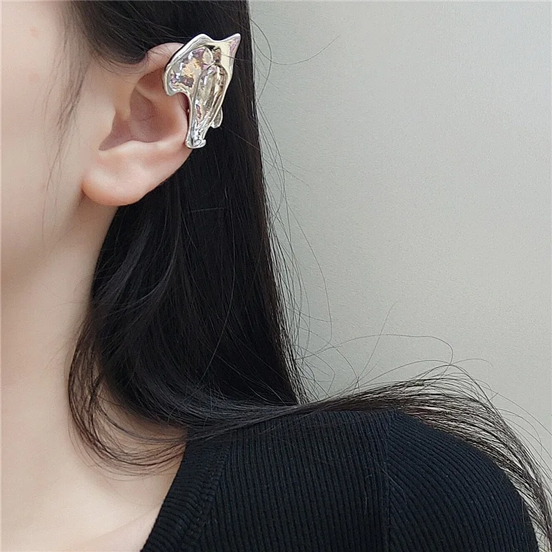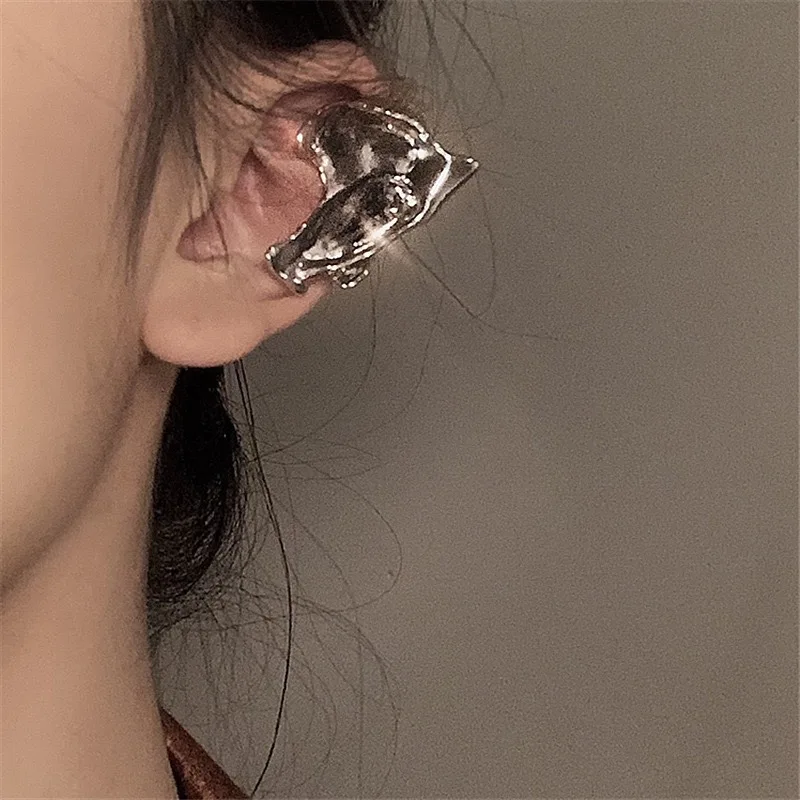Женские серьги-каффы серебристого цвета, в стиле панк