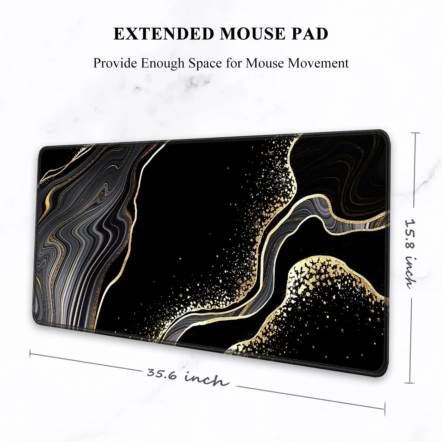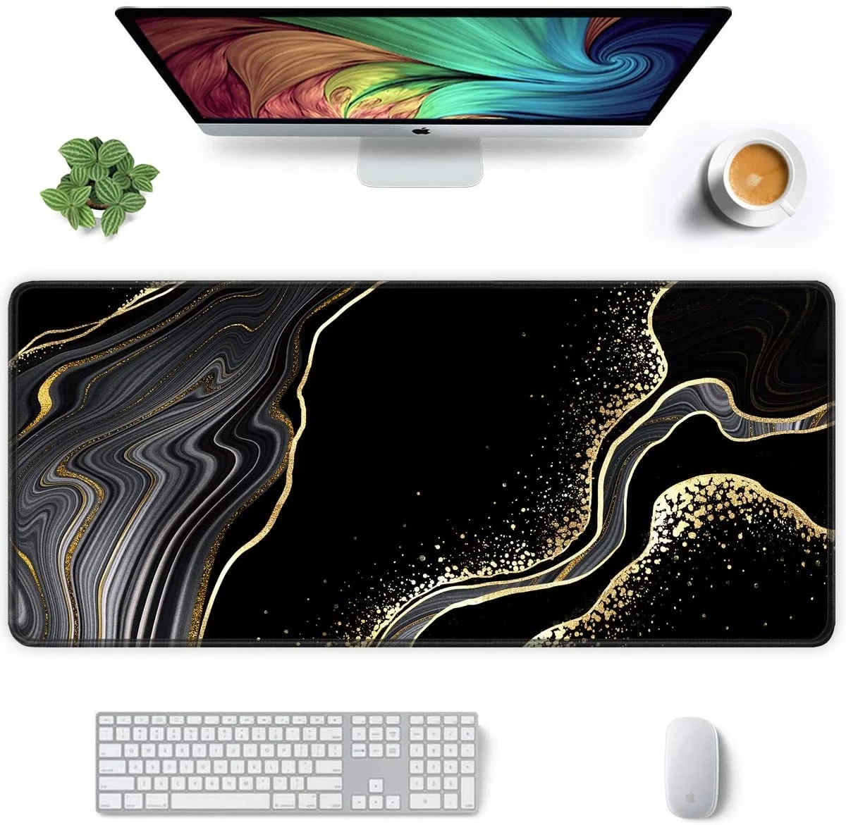 Коврик для мыши HD, игровой компьютерный коврик XXL, коврик для мыши, черный, золотой, мраморный, натуральный каучук, для ноутбука, офиса
